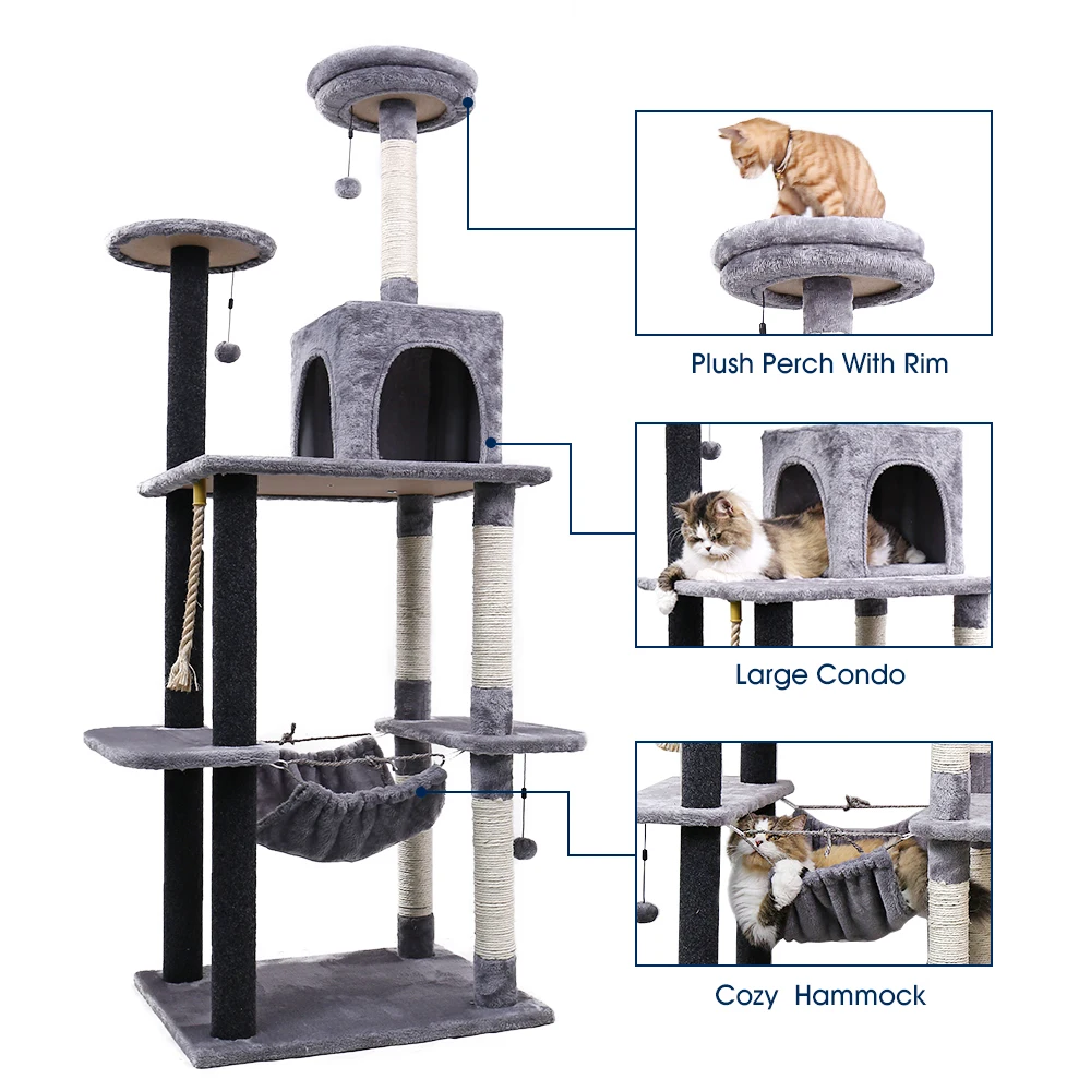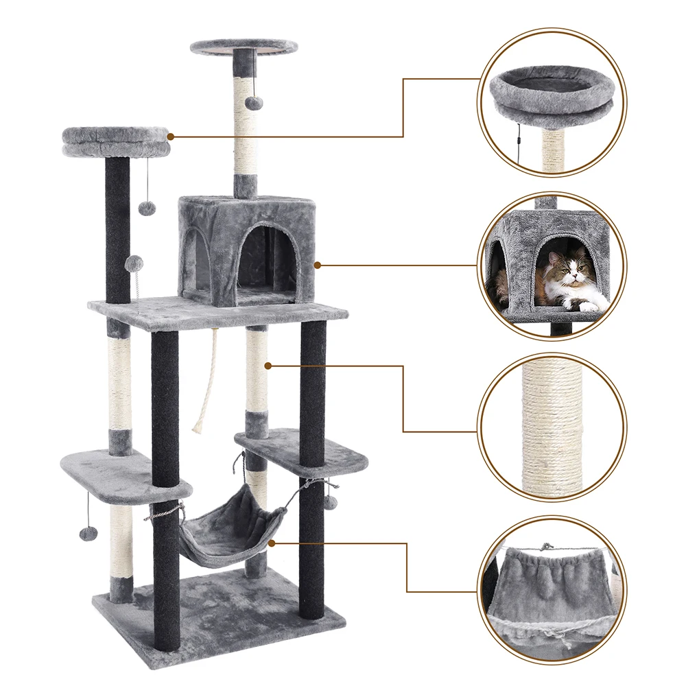 Прочный и безопасный:Стабильность всегда является приоритетом. Нижняя часть усилена, что обеспечивает стабильность всего кошачьего дерева