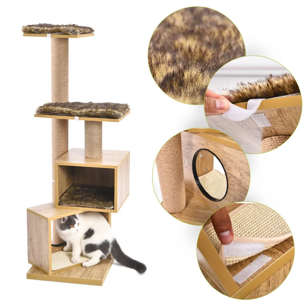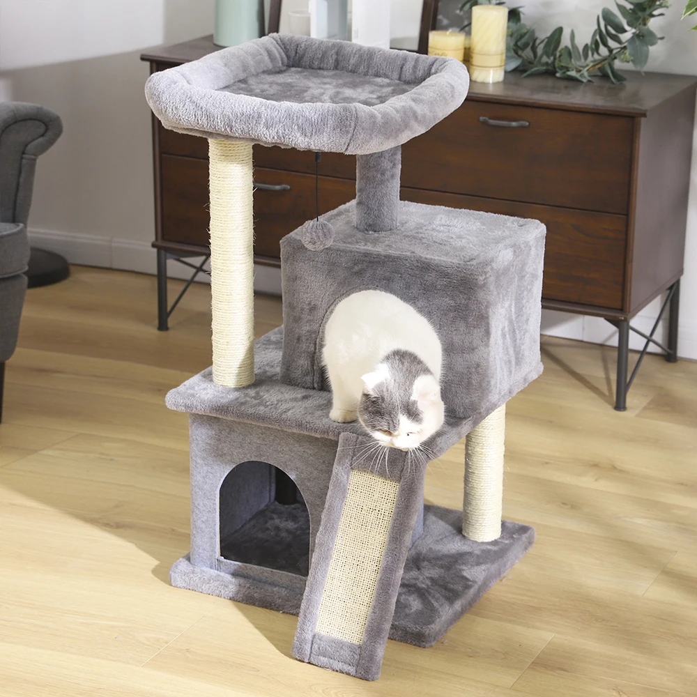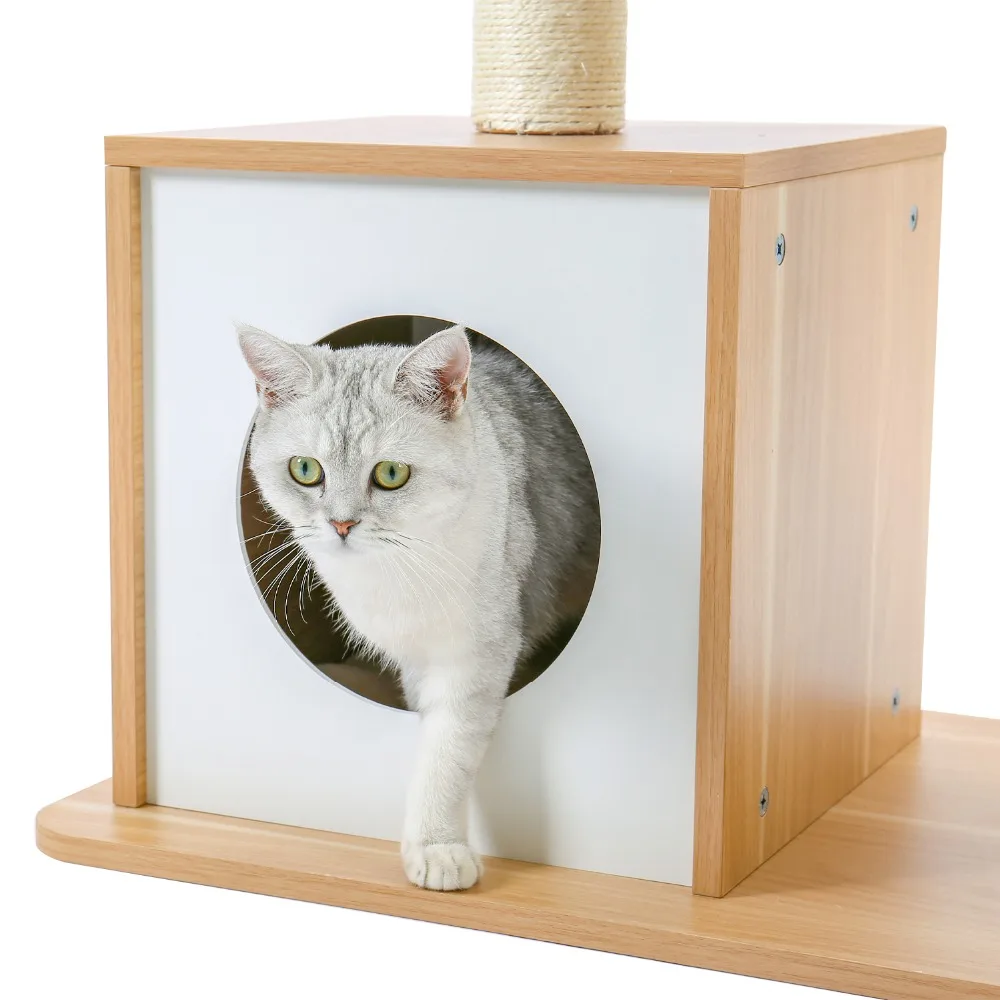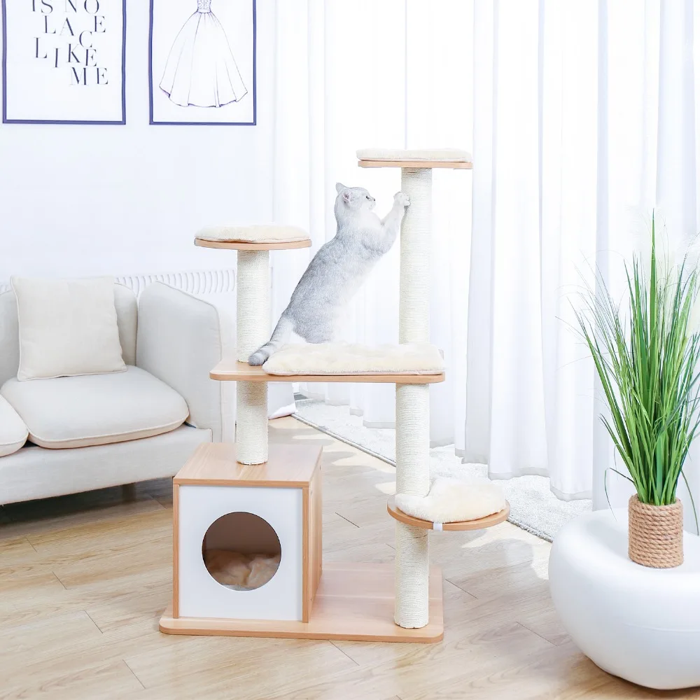 Кошачье дерево, многоуровневый домик для кошек, сизальная Когтеточка и столбы, простой и элегантный стиль для маленьких кошек