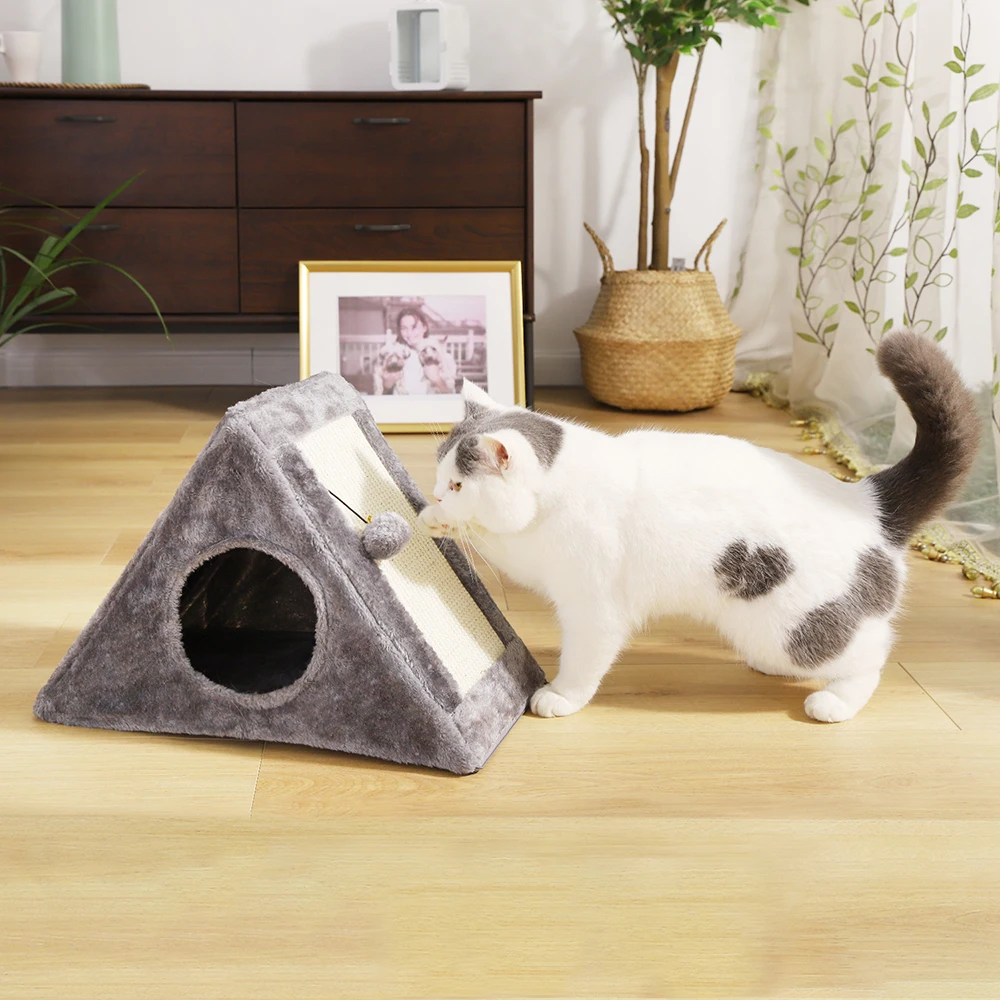 ·Материал высокого качества-доска из шпона высокой плотности, гладкая и прочная. Утолщенный Натуральный сизаль, он может выдержать долгосрочные царапины кошек. Удобные подушки обеспечивают глубокий сон для кошек.