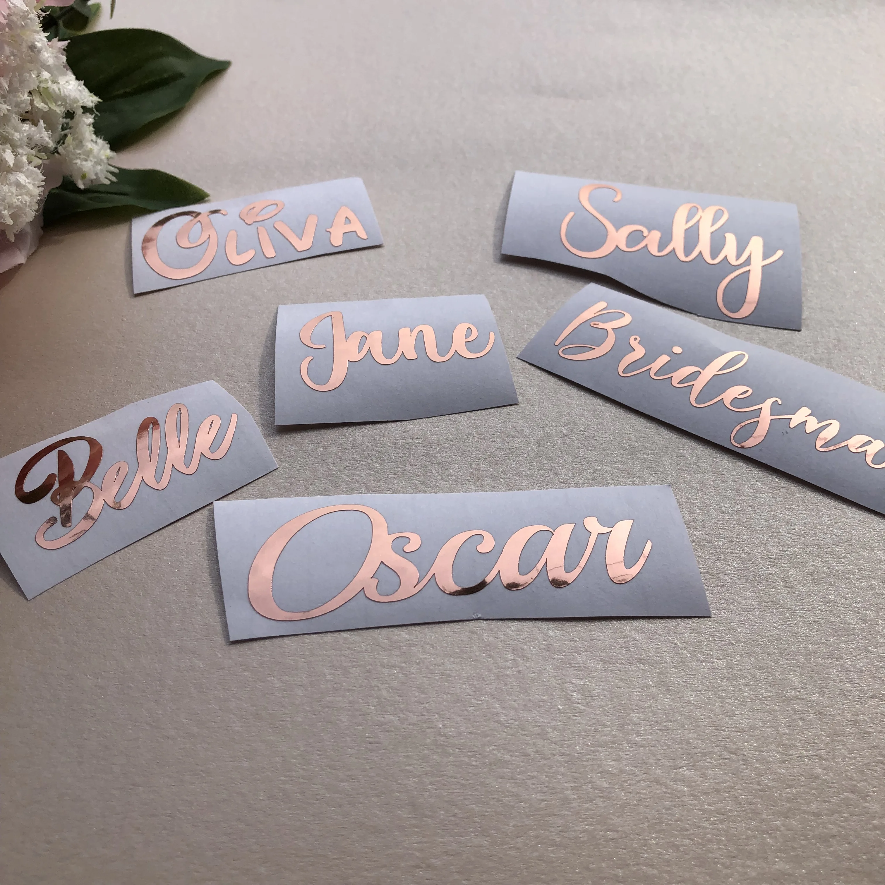 2. Поместите переводные наклейки на наклейку с именами розового золота.