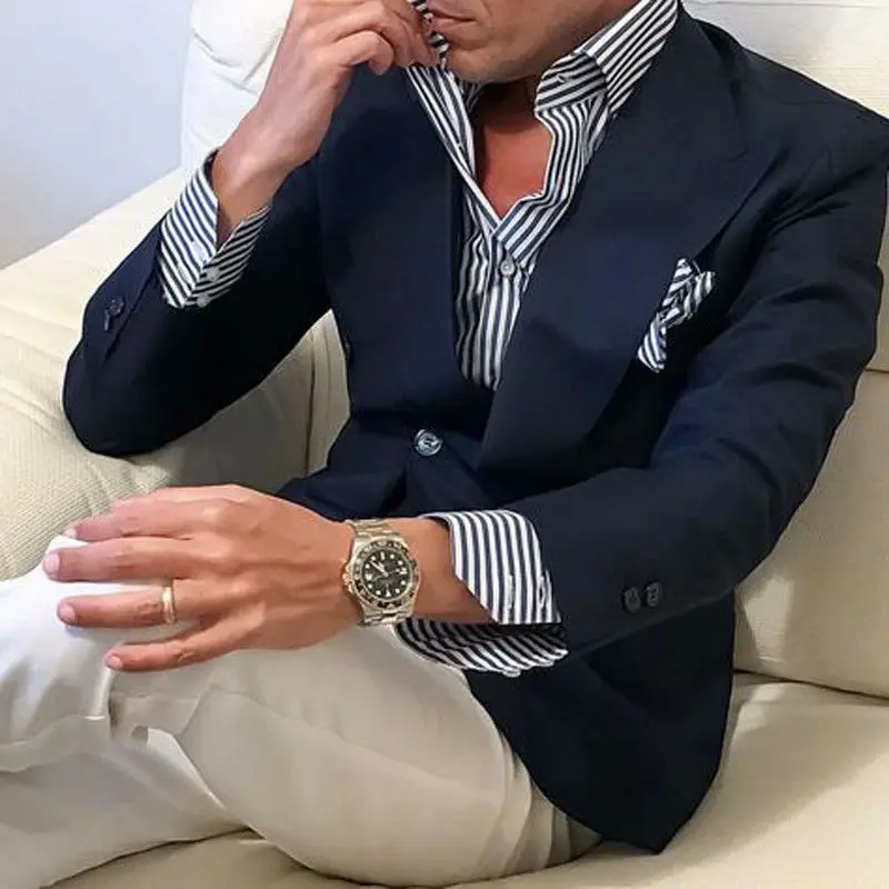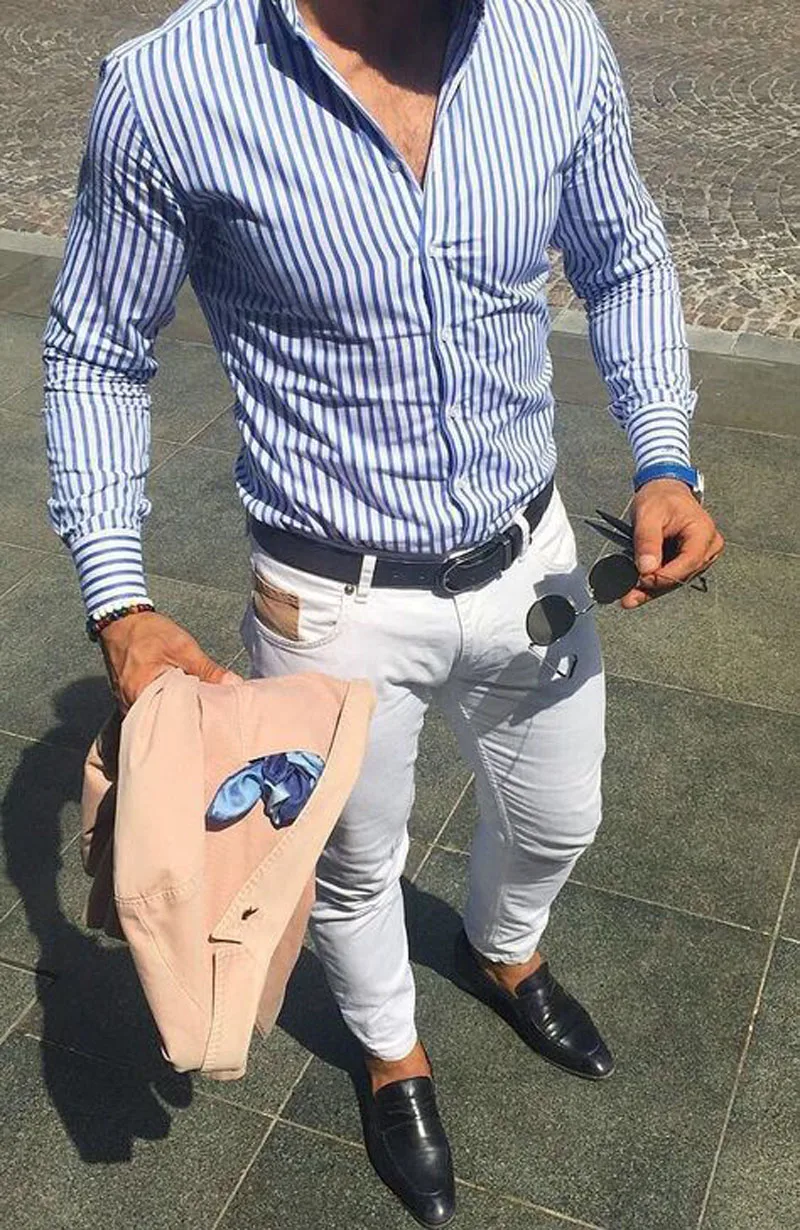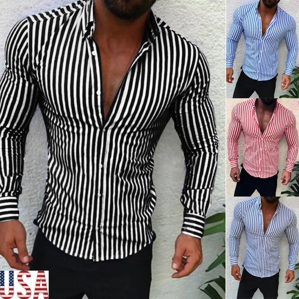 Мужская Повседневная рубашка в полоску, приталенная формальная Классическая рубашка с длинными рукавами, базовая одежда, 2021