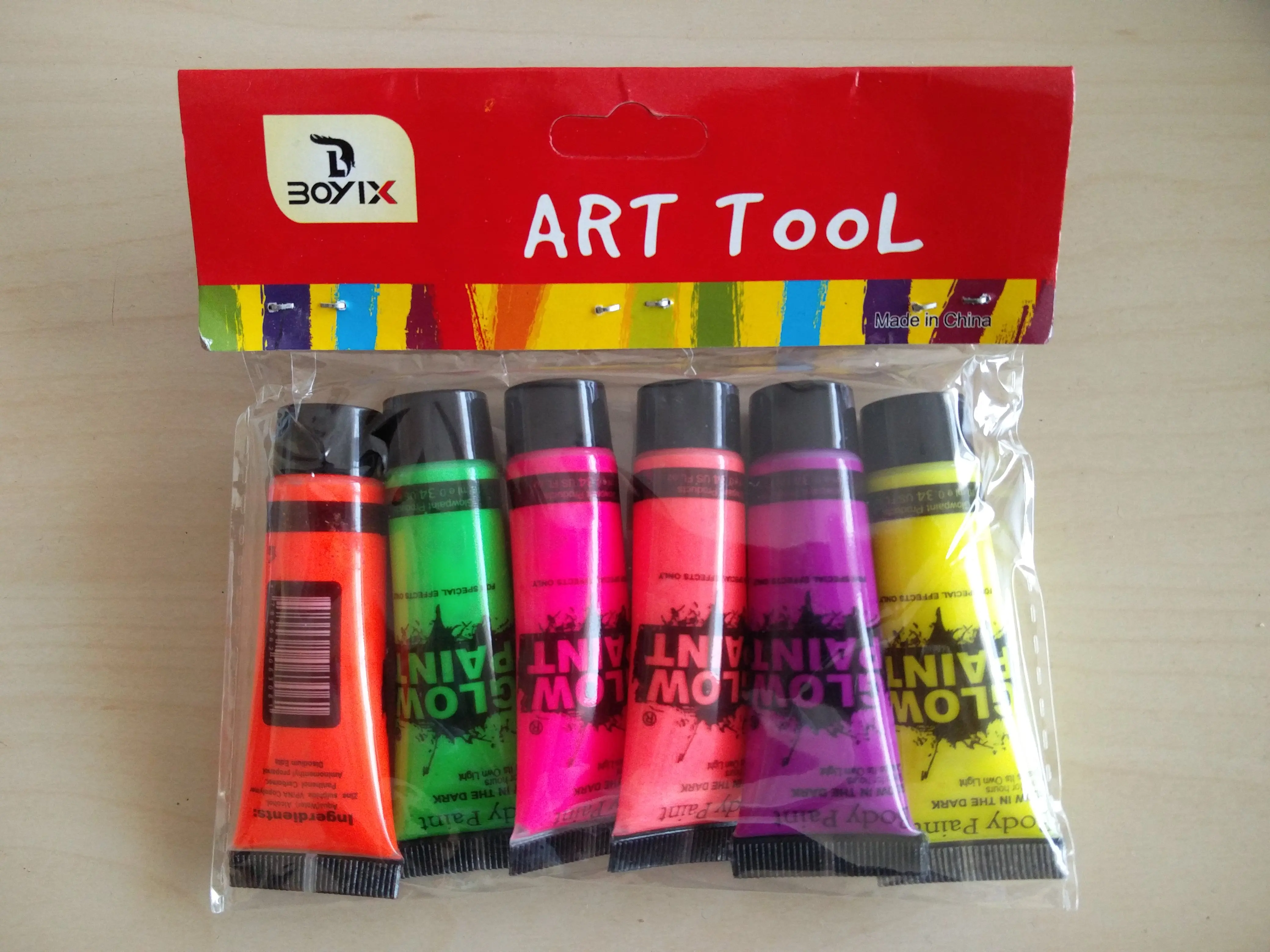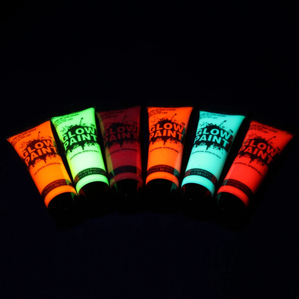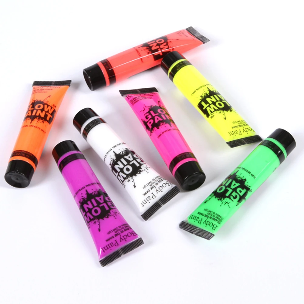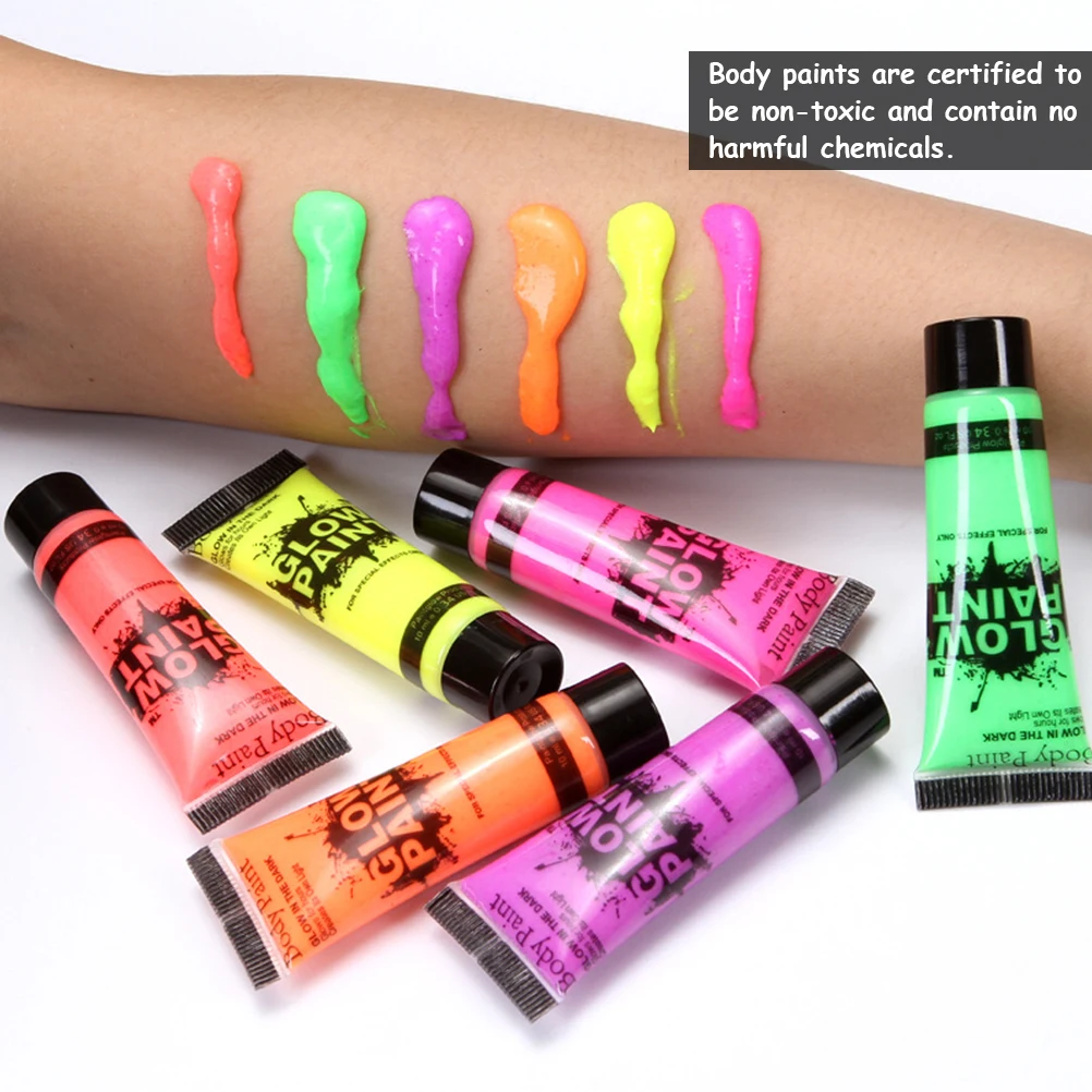 Флуоресцентные краски для тела, 6 штук, УФ светильник па, черные светильник ые краски для лица и тела, Смываемые люминесцентные пигменты для темного тела