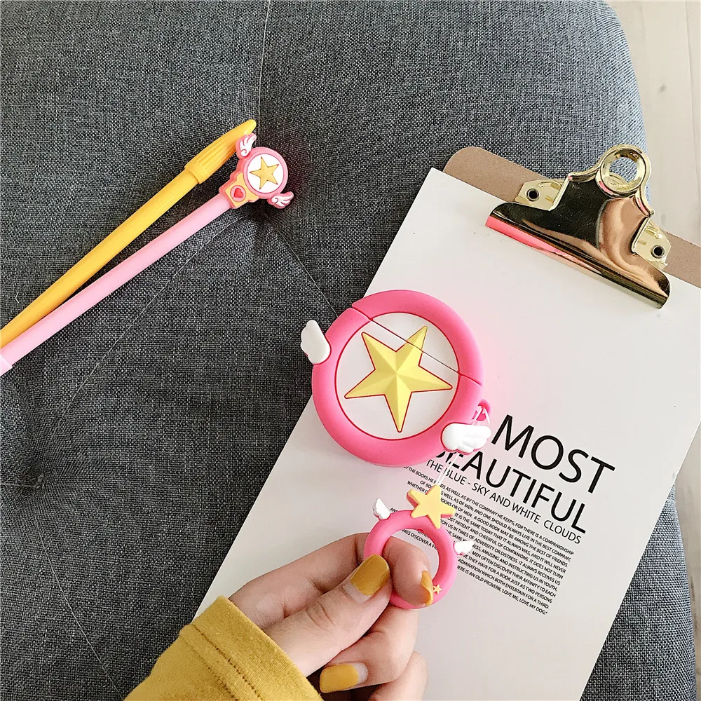 Чехол-визитница Sakura Magic Wand, силиконовый чехол со звездами для Airpods Apple, ремешок на палец, шнурок для наушников, защитная Противоударная сумка