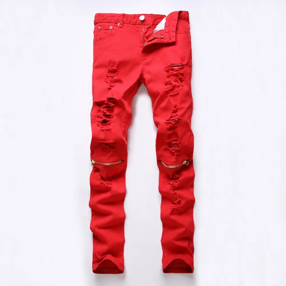 2017 красные, белые, черные рваные джинсовые брюки с вырезами на ко...