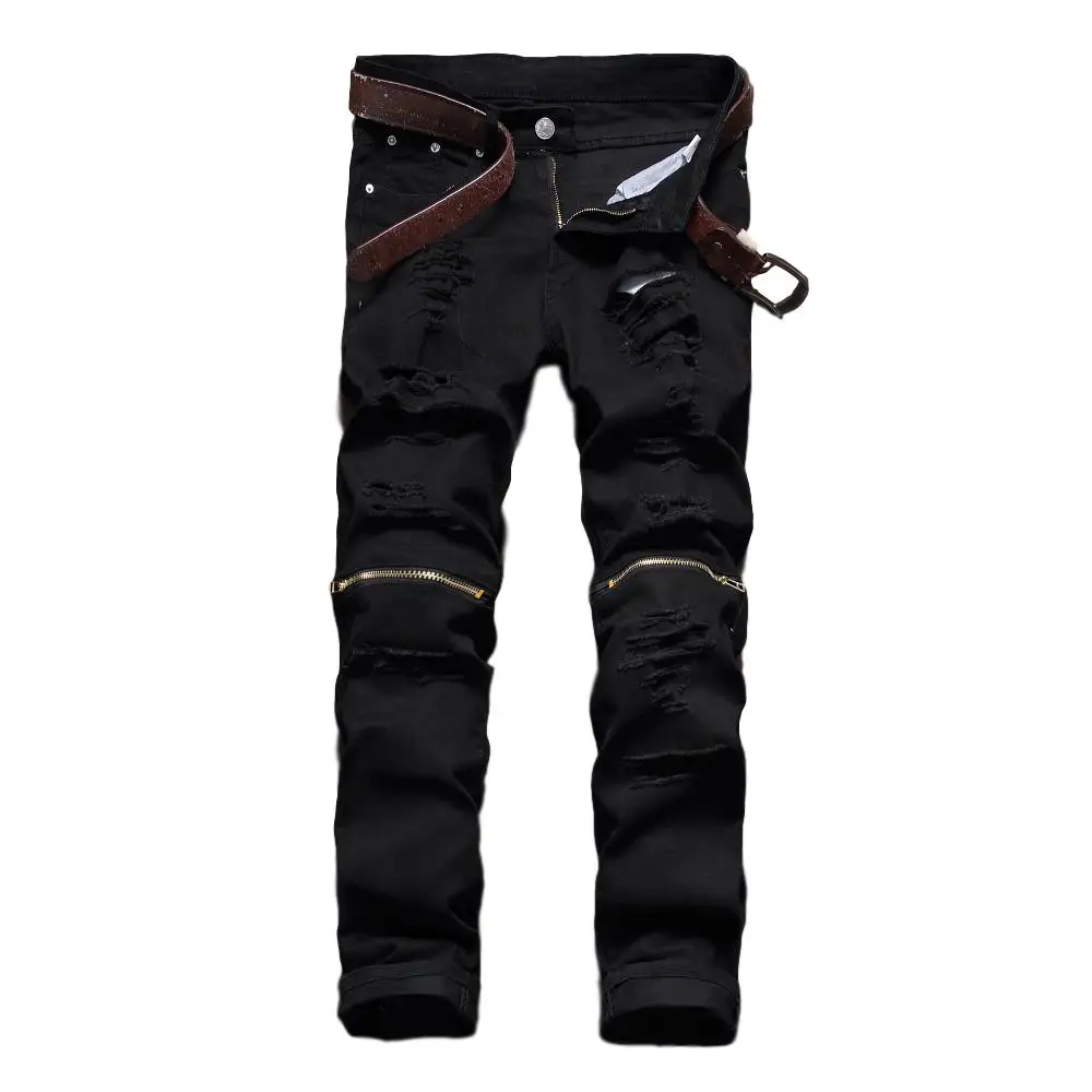 Джинсы мужские зауженные из 100% хлопка, модные рваные байкерские д...