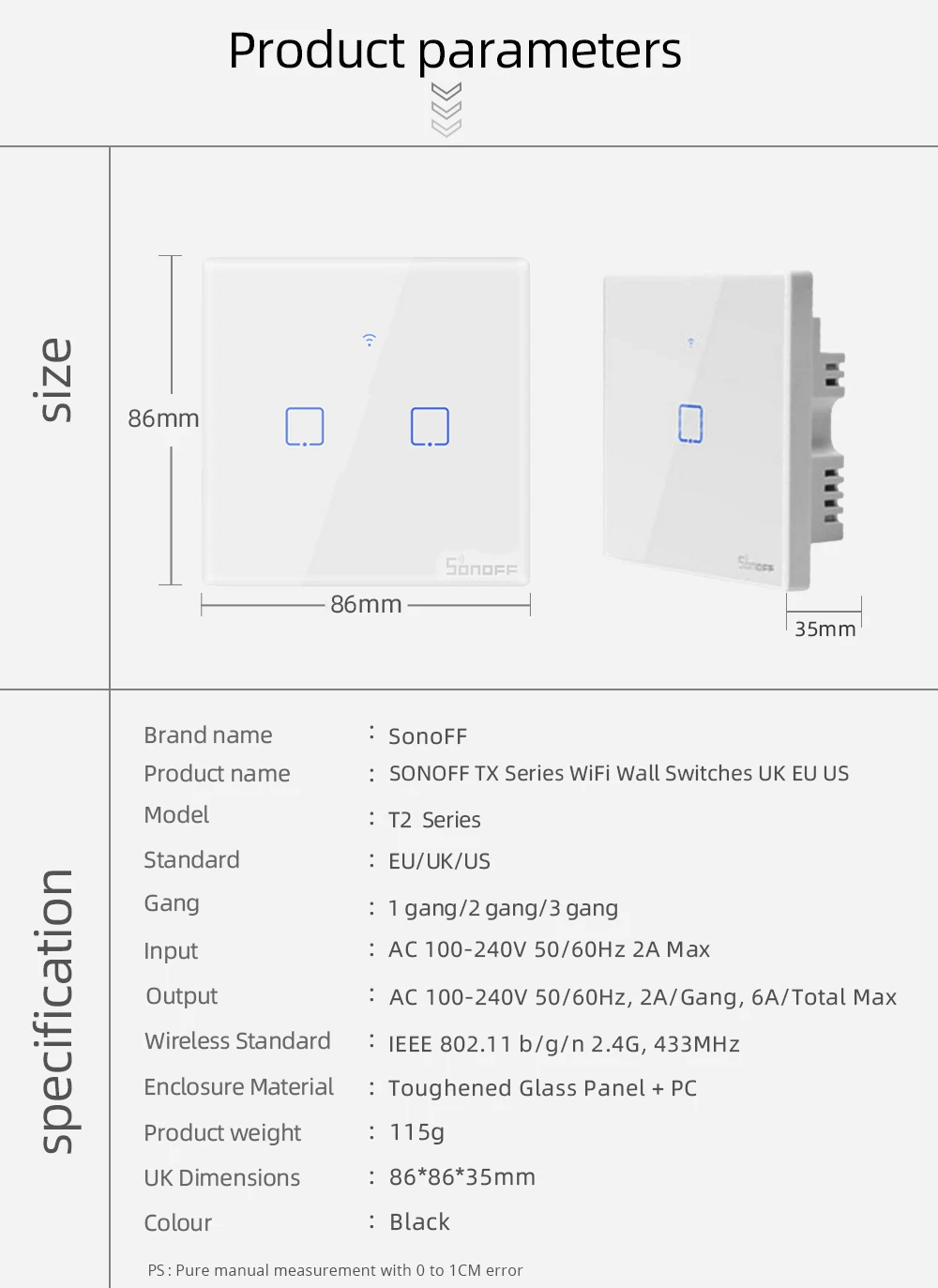 Интеллектуальный выключатель света SONOFF Tx T0 СШАЕСВеликобритания...