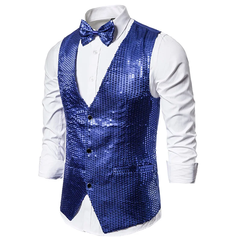 Блестящий ярко-синий жилет с блестками, мужской облегающий жилет с ...
