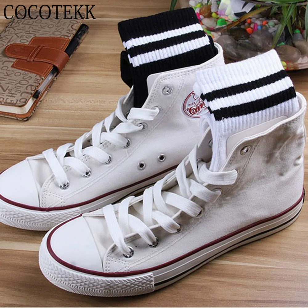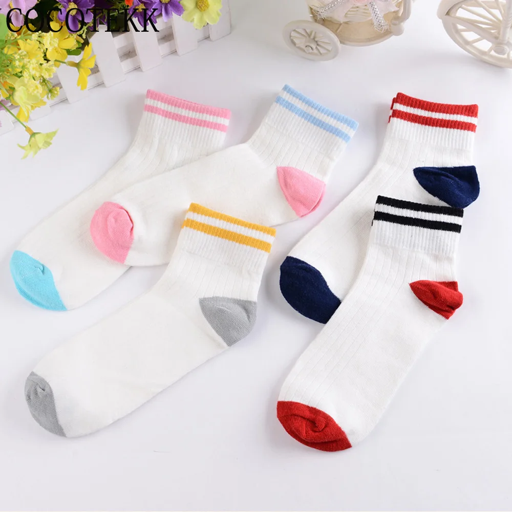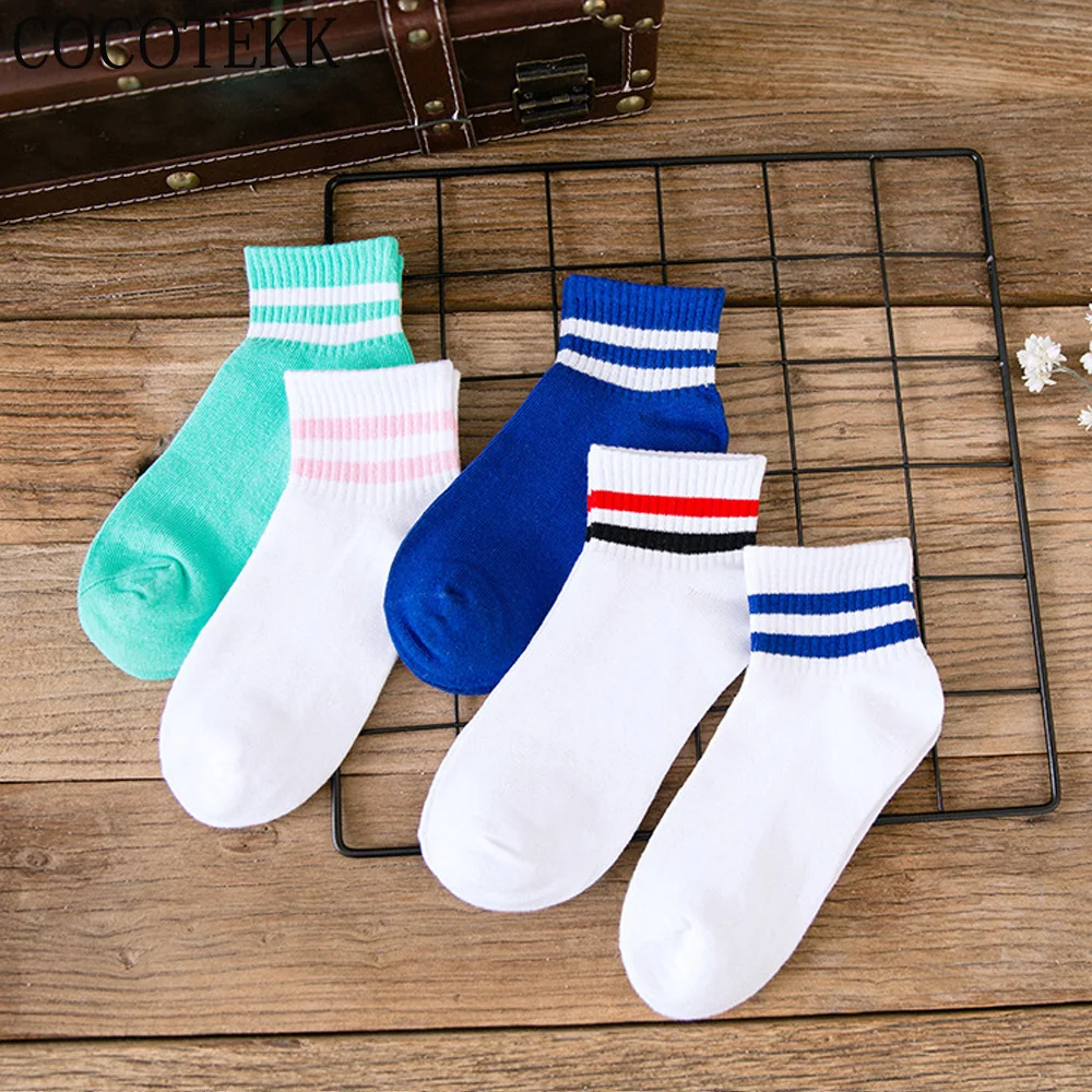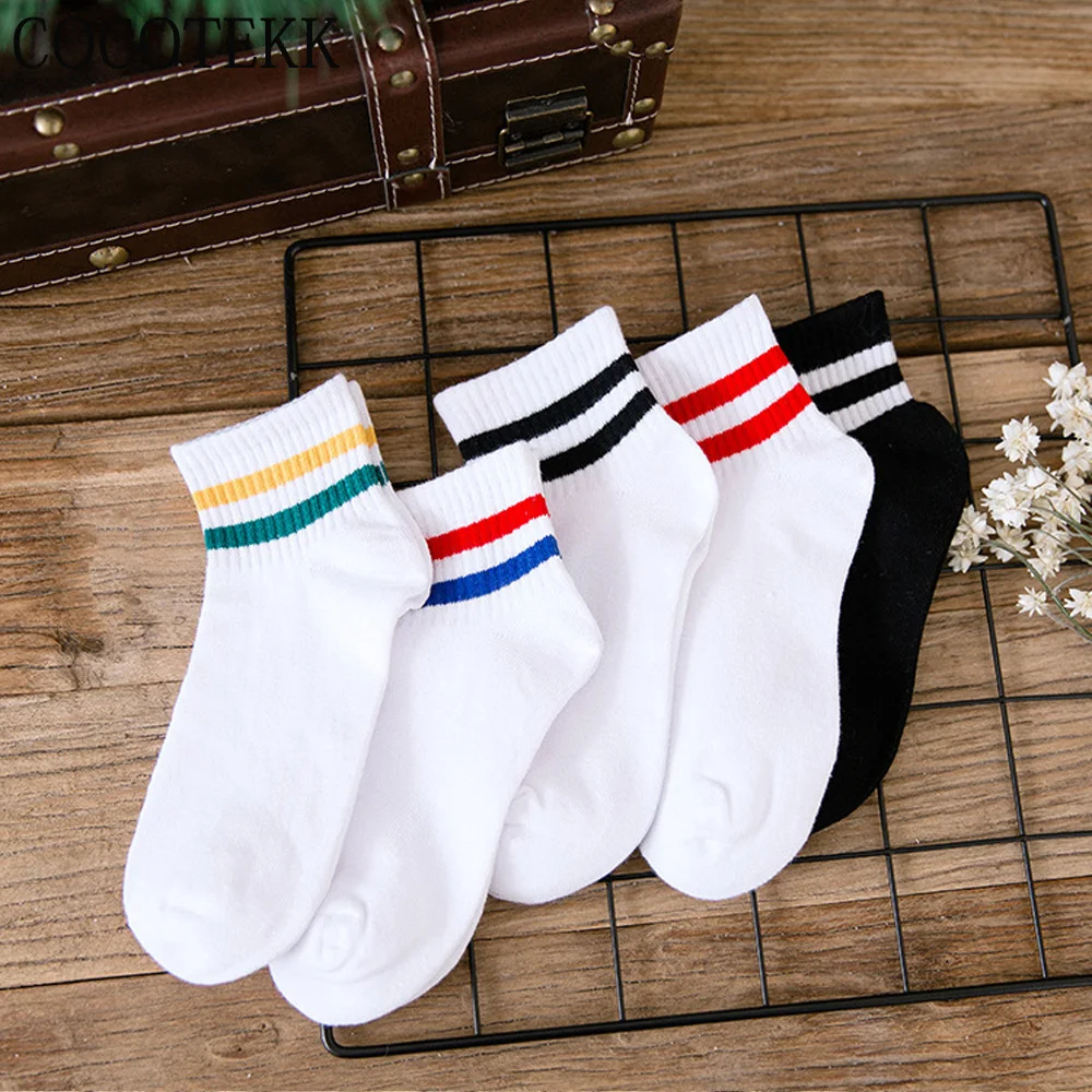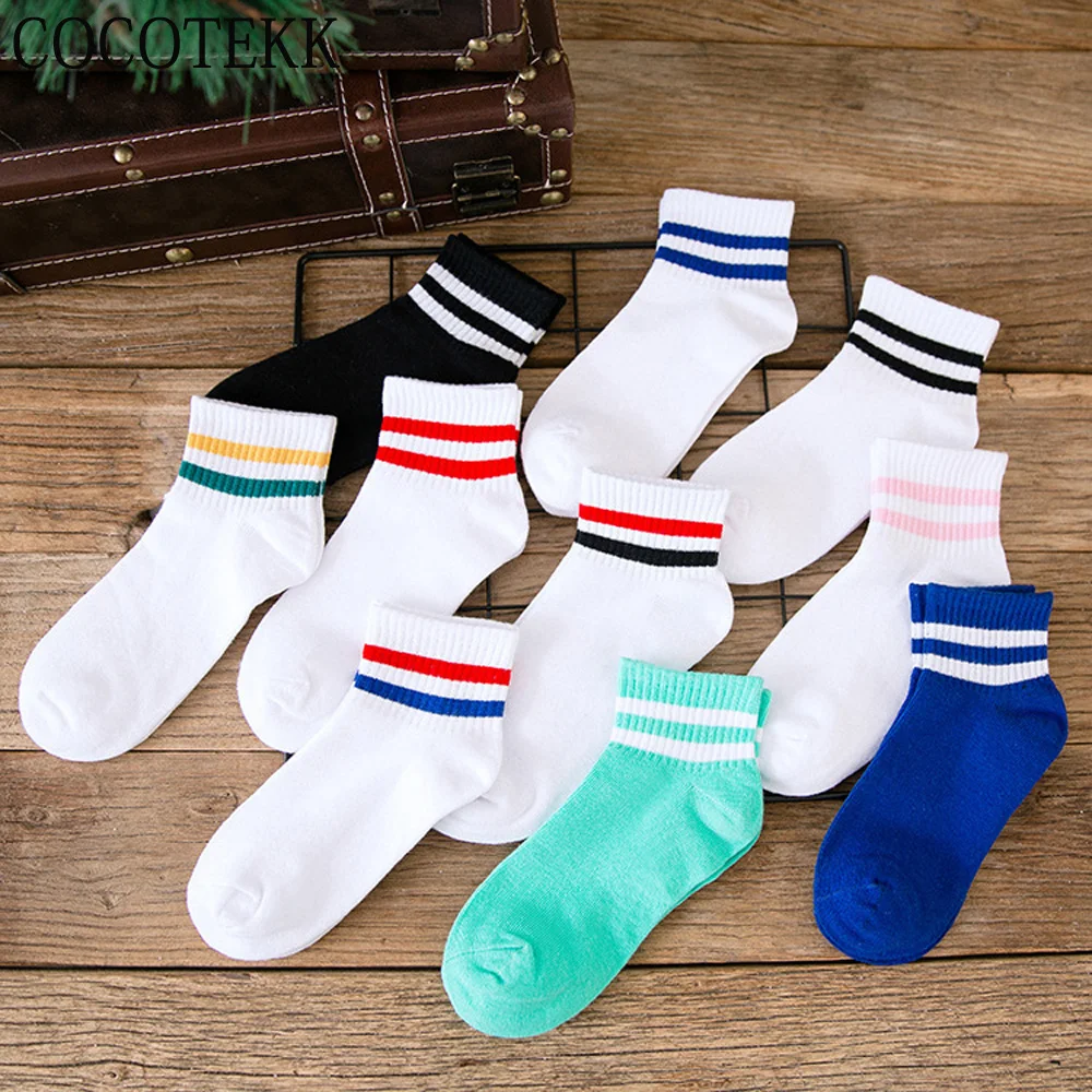 Носки женские классические, модные школьные, в полоску, для пар, хлопковые, белые, черные, повседневные, черные, карамельные цвета, милые в стиле харадзюку
