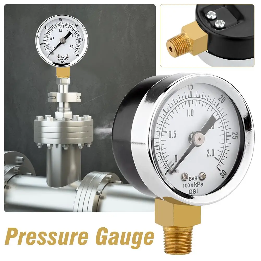 Портативный вакуумный манометр 0-30psi 0-2bar мини Стабильная производительность двойной шкальный Циферблат цифровой дисплей