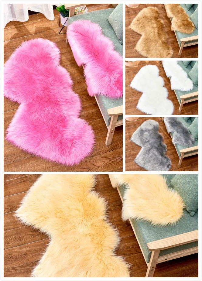 OIMG лохматый ковер для пола, искусственный мех, двойная форма сердца, 6 см ворс, Пушистый Ковер для сиденья, коврик для стула, домашний декор, Tapetes Vloerkleed