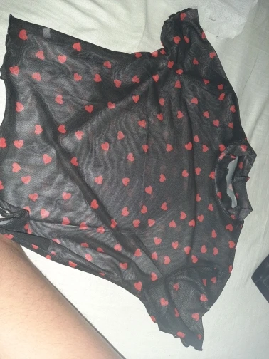 Топ женский сетчатый прозрачный с воротником-хомутом и сердечками