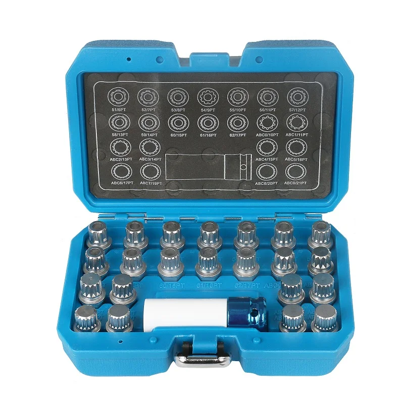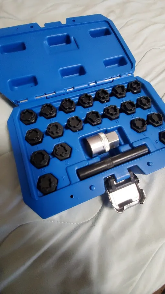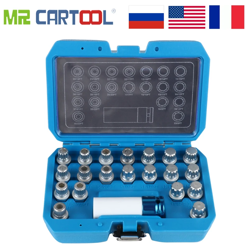 21 шт для BMWТемо 21 шт. ограничитель угла поворота колес Lugnut Противоугонная гайка винт для удаления ключ Набор торцевых головок для BMW с 1/2 дюймов (12,7 мм) гнездо адаптераУдаление гаек на колесах, включая 20 шт. 17 мм гнездо: 30/13PT, 31/15PT, 32/16PT,13/16PT, 12/14PT, 11/15PT, 33/17PT, 34/18PT,35/19PT,16/10PT, 15/11PT, 14/12PT, 36/20PT, 37/21PT, 38/22PT, 19/8PT, 18/13PT, 17/7PT, 40/23PT, 20/9PT.Они используются для удаления гаек для колес на BMW и Mini серии: для BMW: E12, E21, E23, E24, E28, E30, E31, E32, E34, E36, E38, e39, E46, E46/16, E46/2, E46/3, E46/5, E46/C, E52, E53, E60, E61, E63, E64, E65, E66, E67, E70, E81, E82, E83, E85, E86, E87, E90, E91, E92, E93, для BMW Mini: R50, r52, R53