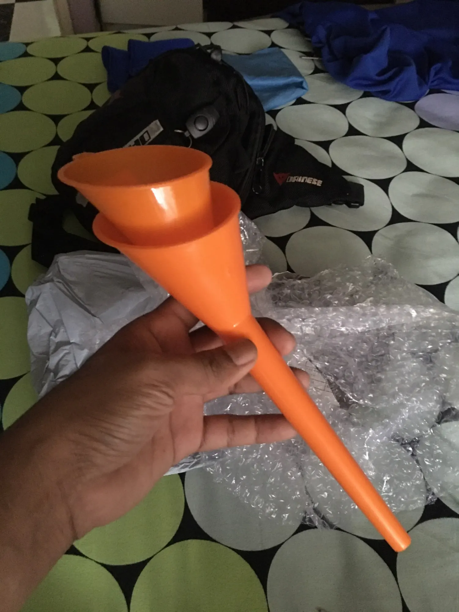 Очень хорошая Воронка для изготовления бензина или масла, немного маленькая, но идеально подходит для попадания в бак, я, конечно, рекомендую его, так как по вашей цене я бы купил его снова, доставка занимает короткое время, благодаря продавцу.