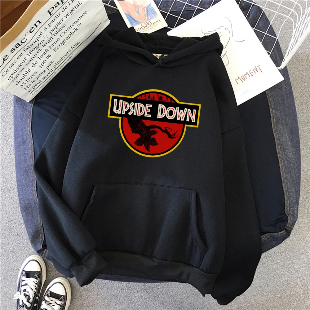 Мужская толстовка с капюшоном, черная стильная толстовка с забавным принтом в стиле очень странные дела, уличная одежда в стиле хип-хоп, 2021