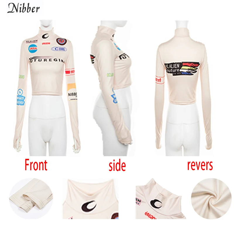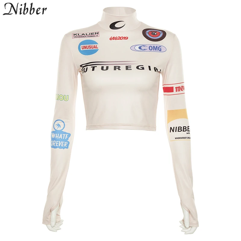 Футболка женская Nibber Harajuku, с принтом, осенняя, эластичная, с длинными рукавами и круглым вырезом