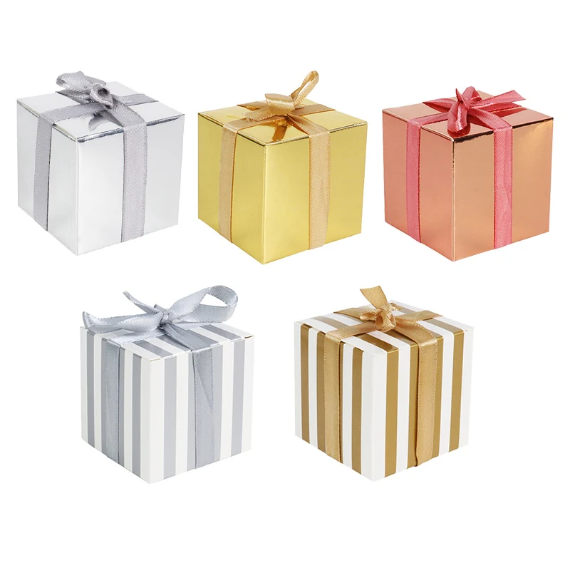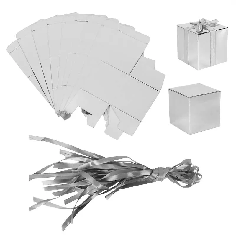 Страна: US Color: sliver Striped box Gift Bag Size: 50pcs Gift Box Size: 5x5x5cm Доставка: Standard Shipping 10.03.2022