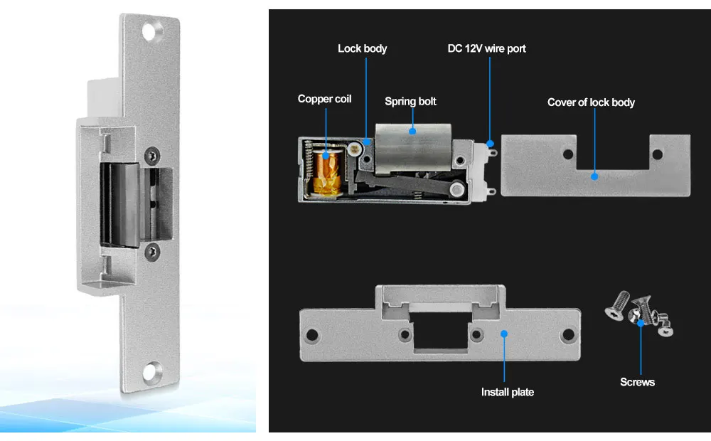 ③: Электрический замок с капельным болтом: подходит для деревянной, металлической двери, двери безопасности. Высокая чувствительность и стабильность, очень красиво!