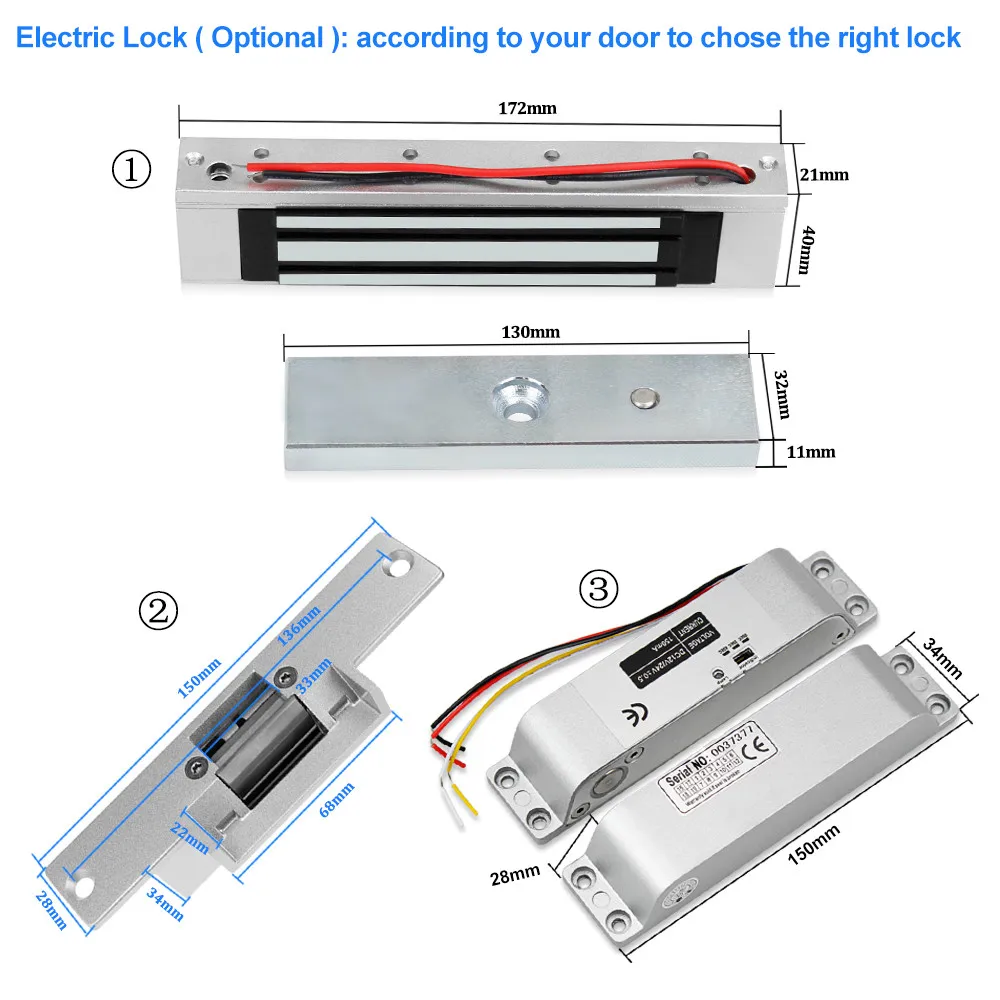 Примечание: Это полный комплект системы контроля доступа по отпечатку пальца. Вы можете увидеть три различных набора вариантов. Единственное отличие-это замки, подходящие для разных дверей. Пожалуйста, выбирайте товары в соответствии с типом вашей двери. Если у вас есть какие-либо вопросы, пожалуйста, свяжитесь с нами.