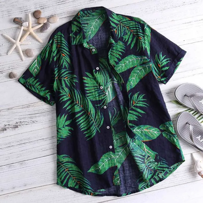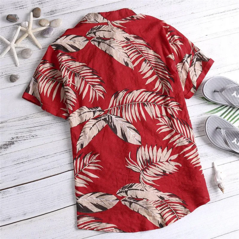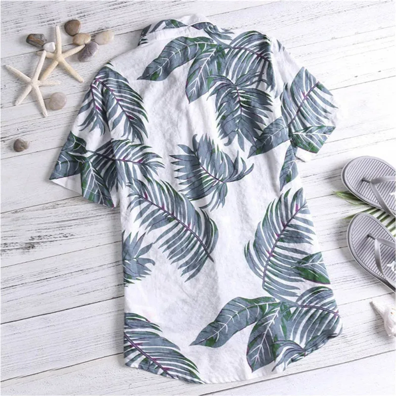 Повседневная мужская пляжная рубашка из хлопка с цветочным принтом, гавайская свободная пляжная одежда с коротким рукавом, Повседневная рубашка на пуговицах