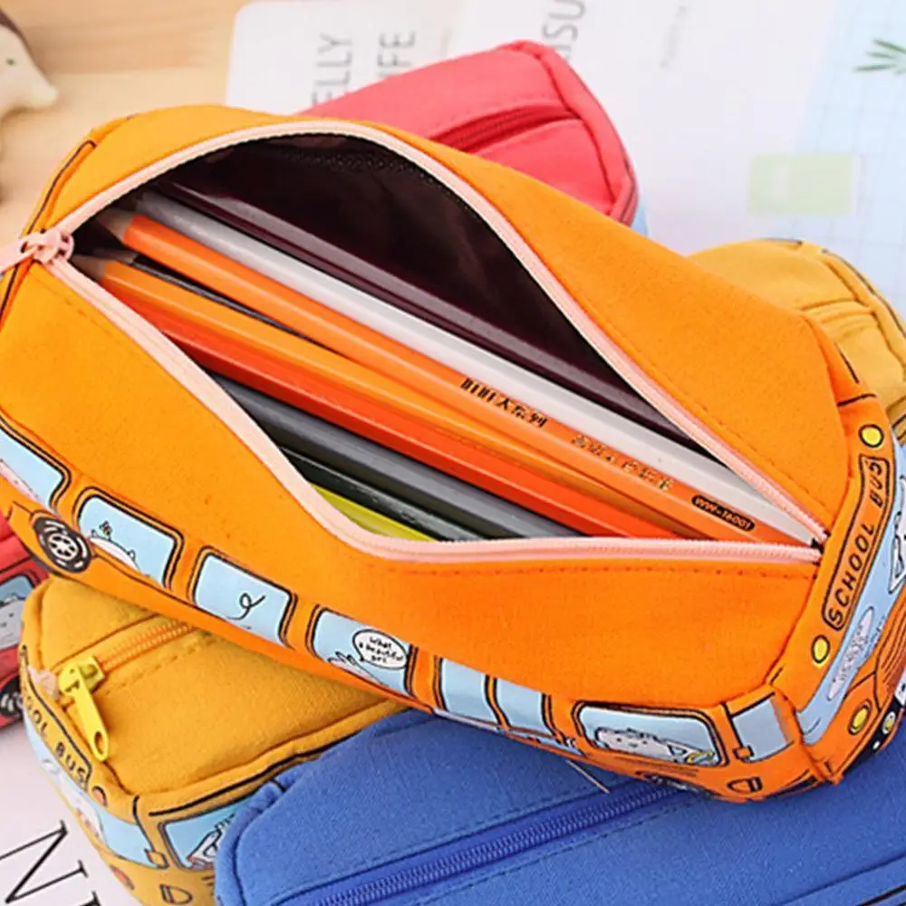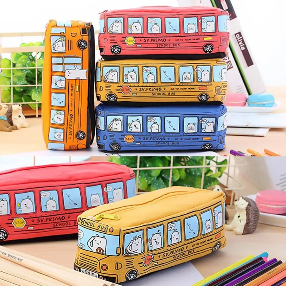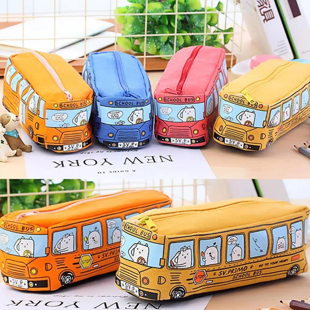 1 шт., креативный пенал, многофункциональный пенал для автобуса, вместительный холщовый чехол-карандаш для мальчиков и девочек, простая пенал, канцелярский подарок