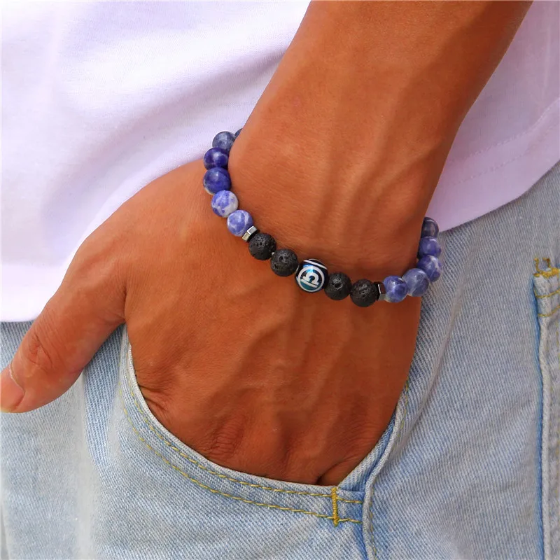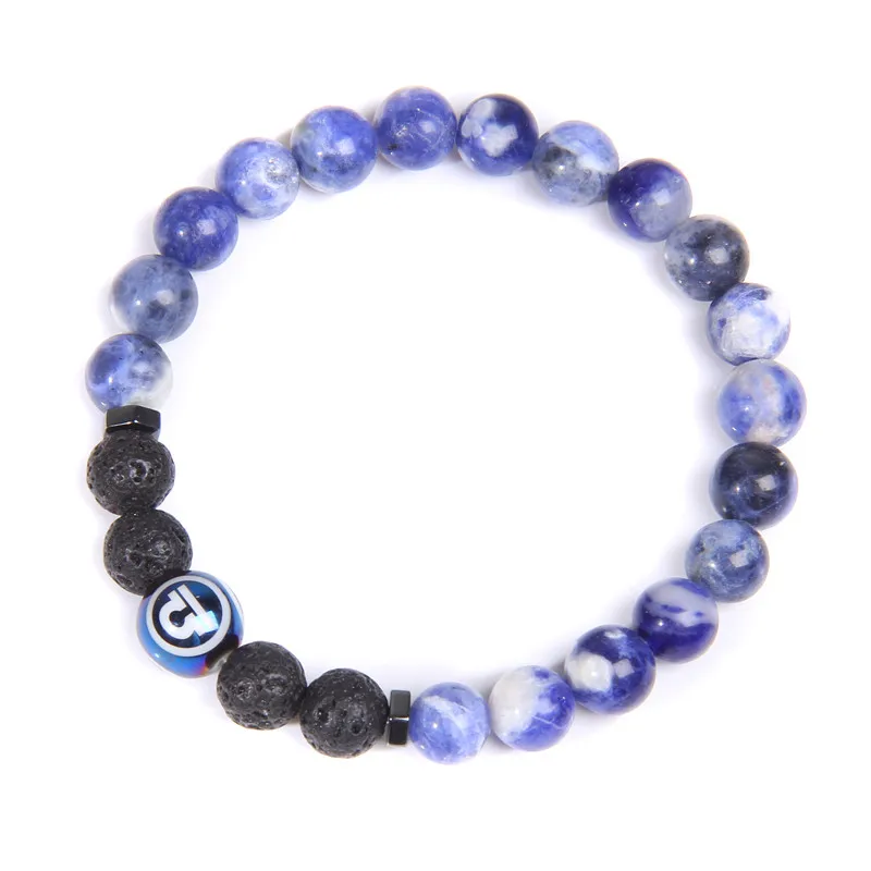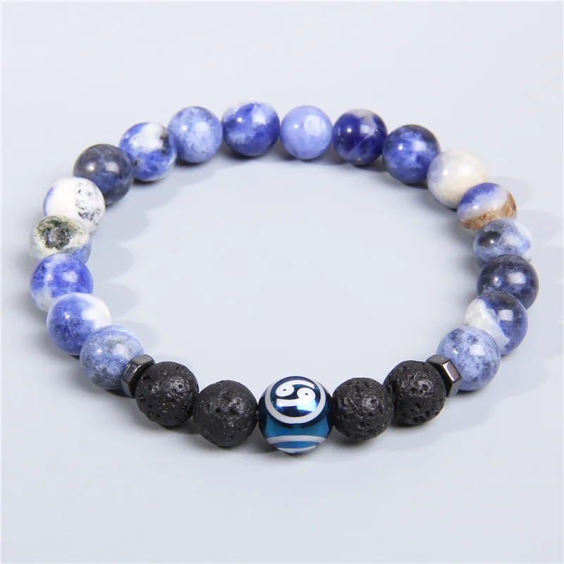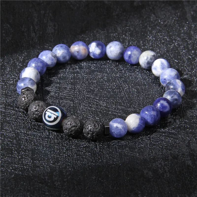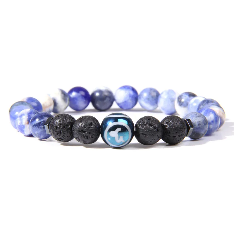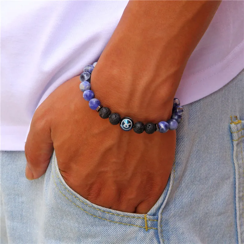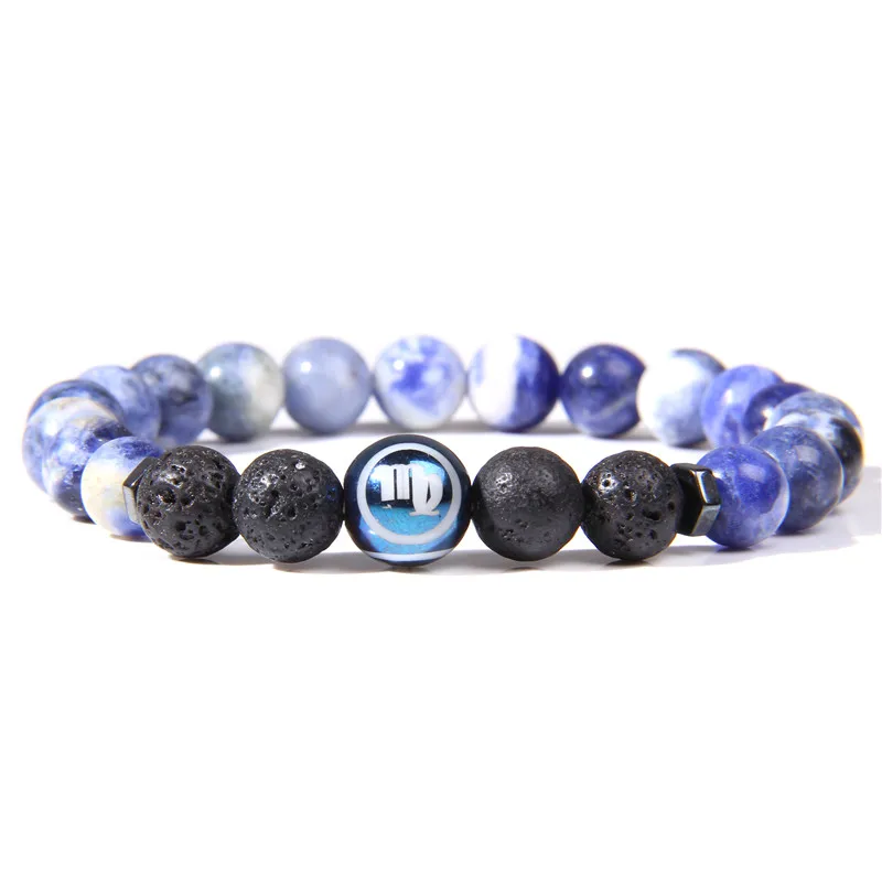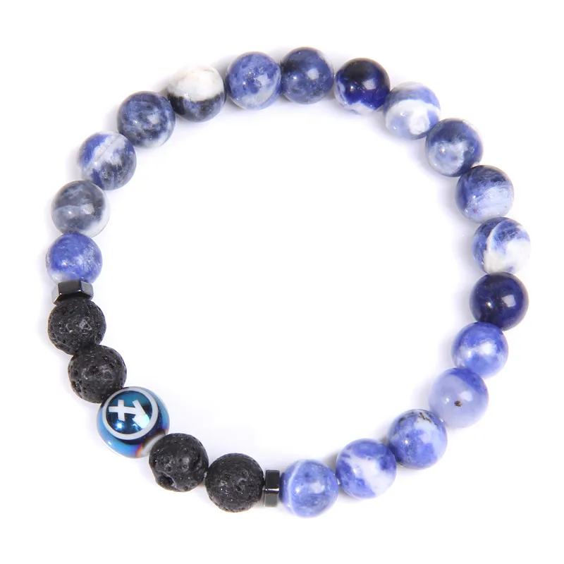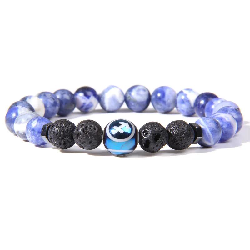 Для женщин Для мужчин натуральный содалит двенадцать созвездий браслет из каменных бус синий Стрелец бусины в форме двойного конуса, красивые браслет ювелирные изделия для мужчин подарок