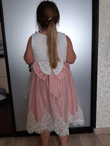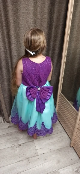 Платье красивое! Доставка быстрая! Украшения дочери очень понравились! Размер соответствует, главное писать при заказе рост ребёнка. На средней полноты девочку.