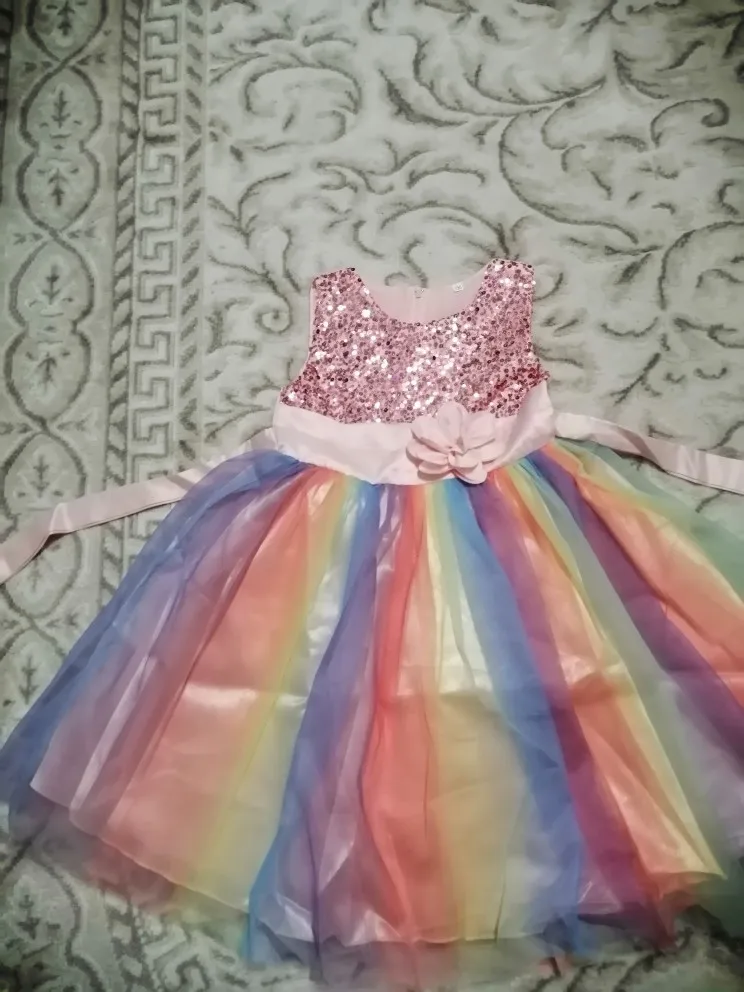 платье мы получили, но очень долгая доставка, открыли сор, теперь не можем его закрыть, т.к. система перегружена... платье очень красивое, ребенок в восторге... где то немного торчат нитки, но это не критично...отпарить отгладить и будет