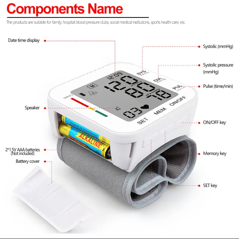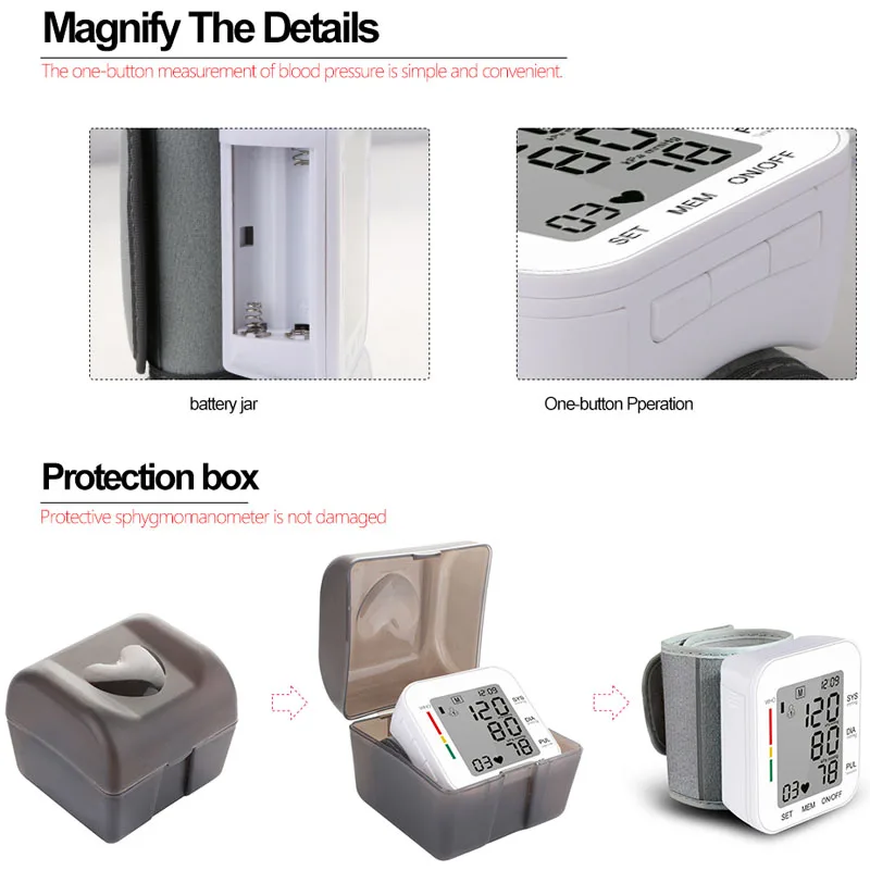 Портативный автоматический наручный прибор для измерения артериального давления, автоматический измеритель артериального давления на запястье, нагревательный пульсометр, тонометр