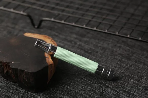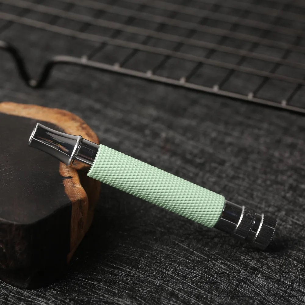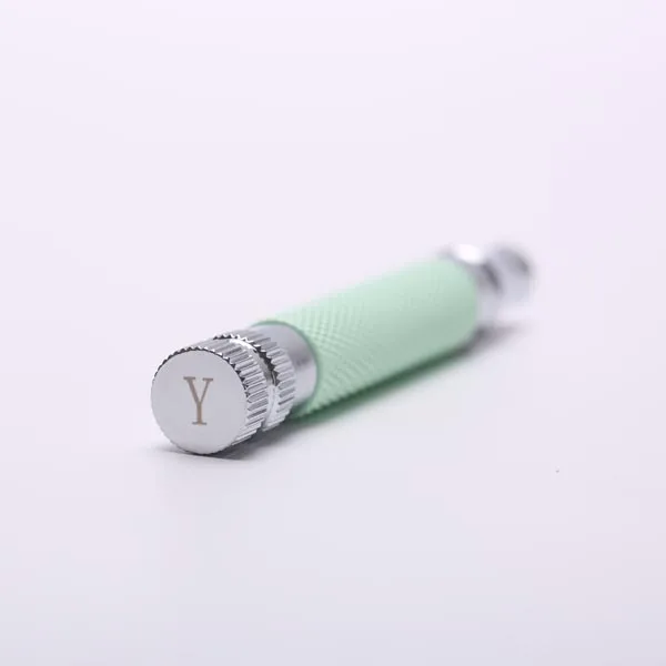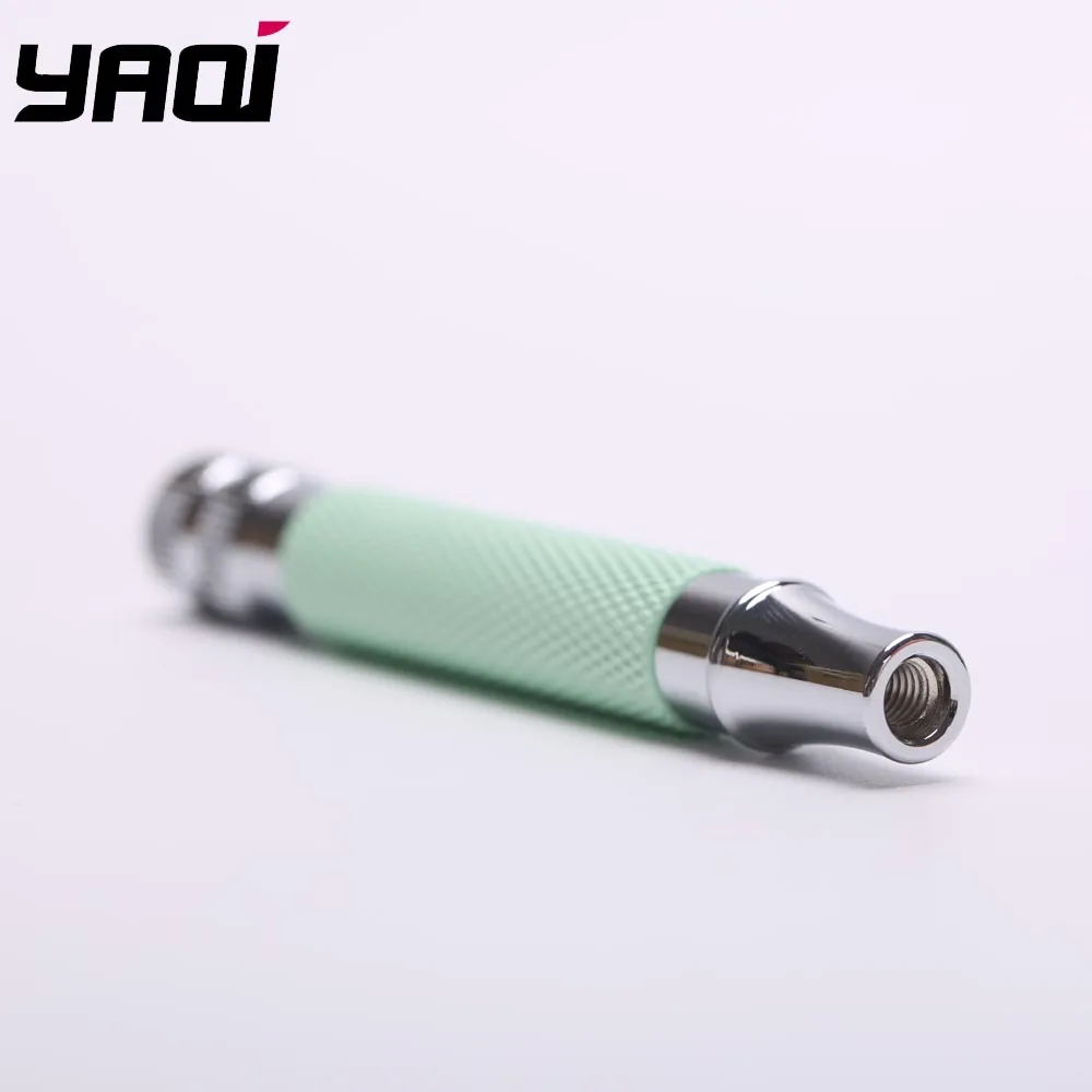 Ручка для безопасной бритвы Yaqi фисташкового зеленого и хромированного цвета из латуни
