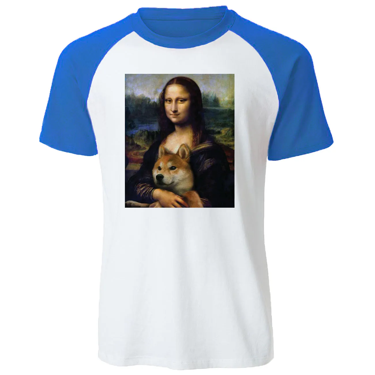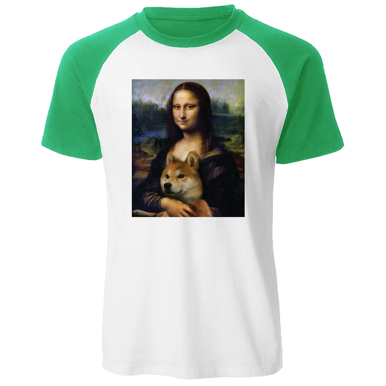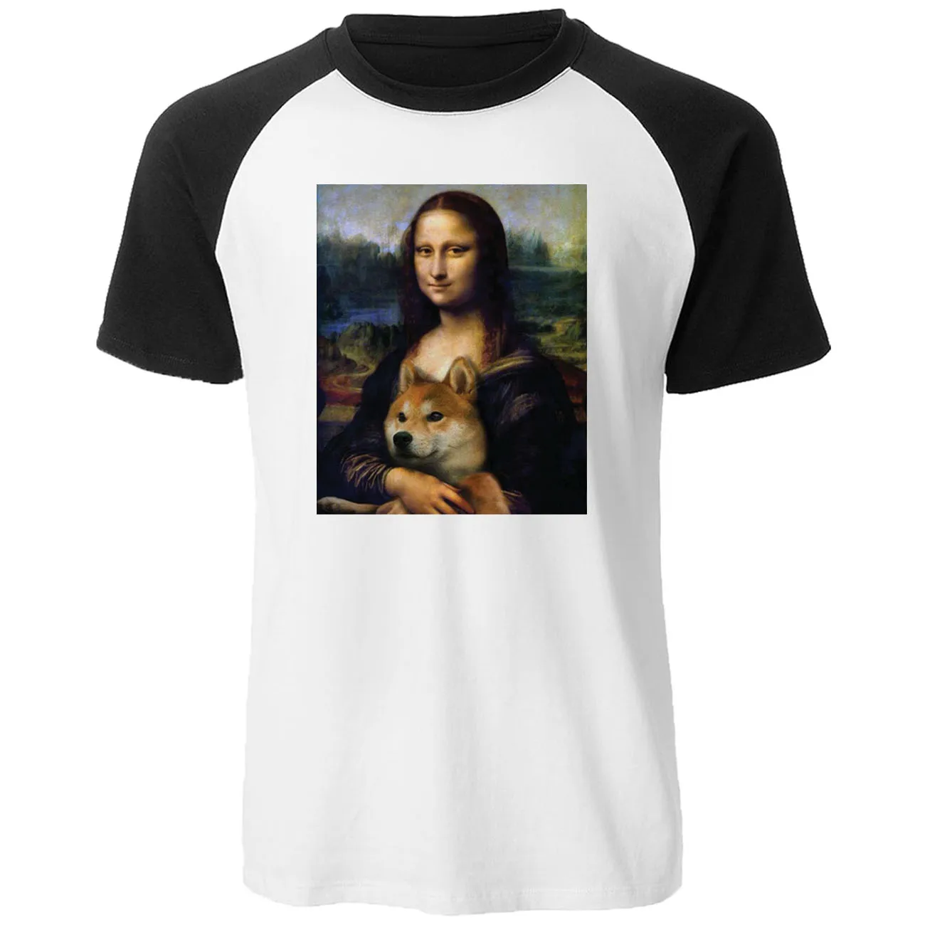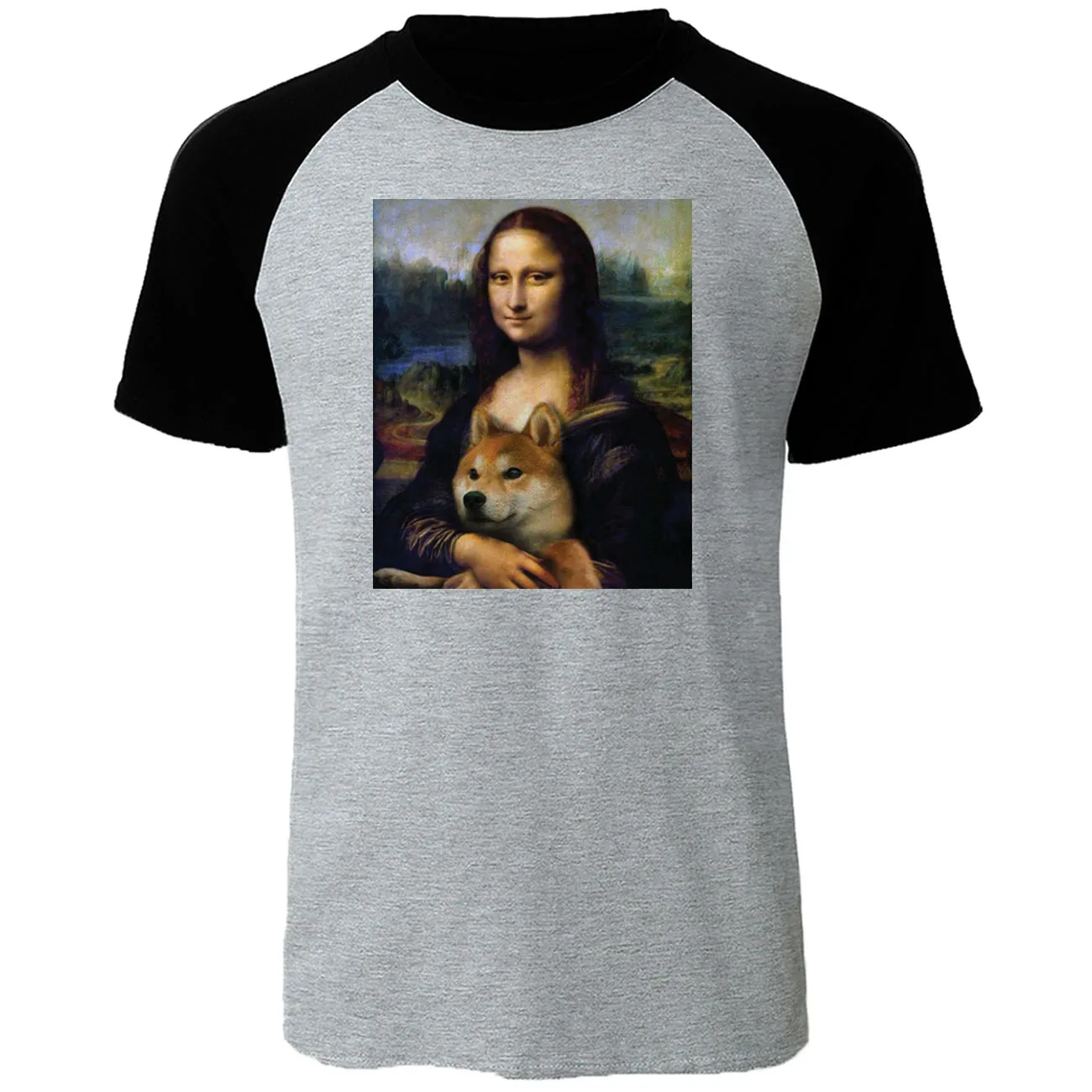 Мужские футболки с принтом Моны Лизы Шиба-ину доге, Новое поступление 2019, летние мужские футболки реглан, хлопковая футболка высокого качества, мужские топы