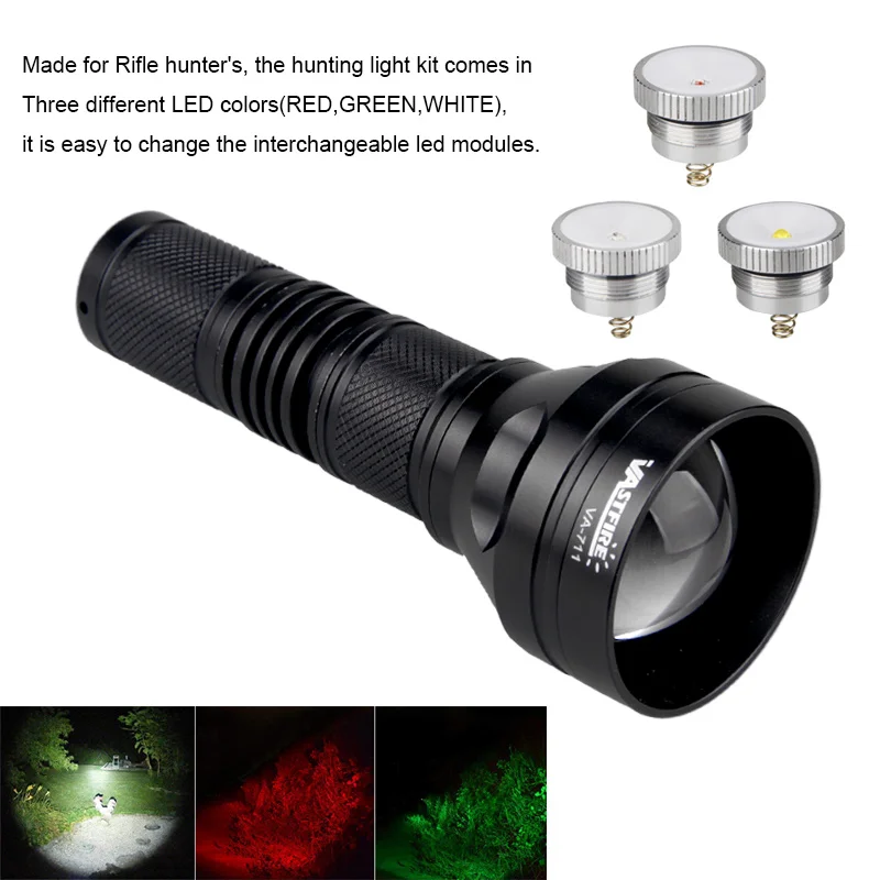 Тактический охотничий фонарь с контролем интенсивности-масштабируемый зеленый-красный белый светодиодный для хищника Универсальный комплект для крепления винтовки-Zommable контроль с 3 регулируемой яркостью, обеспечивает несколько режимов освещения для вашей ночной деятельности-3 светодиодный модуля включены, красный и зеленый светильник-модуль для охоты, белый светильник-модуль для ночной рыбалки, Походов, Кемпинга, поиска и других чрезвычайных ситуаций.-Умный дистанционный переключатель/крысиный хвостовый переключатель в комплекте, освобождает руки во время ночной охоты/стрельбы.Характеристики фонарика:Ремешок: VASTFIREМодель: VA-711Материал: 6061T алюминийЛампа: 3 разных цвета-зеленый, красный и белый светодиодныйСветильник Цвет: зеленый; Красный; Белый; Фиолетовый свет и т. д.; ИК 850; Лазерный ИК 850Расстояние освещения: белый светодиод 400 ярдов; Зеленый светодиод 350 ярдов; Красный светодиод 250 ярдов; Фиолетовый VU 395NM;3 Вт IR 850 100-150 ярдов; Лазерный IR 850 200-400yardsРежимы: 1Ток: 1.5AРаботают Напряжение: 3,7-4,2 VБатареи: 1 литий-ионный аккумулятор 18650 (не входят в комплект)Цвет корпуса: черныйПереключатели:Переключатель 1: кнопка включения/выключения задней крышкиПереключатель 2: дистанционный переключатель давленияВодонепроницаемость: IPX-65