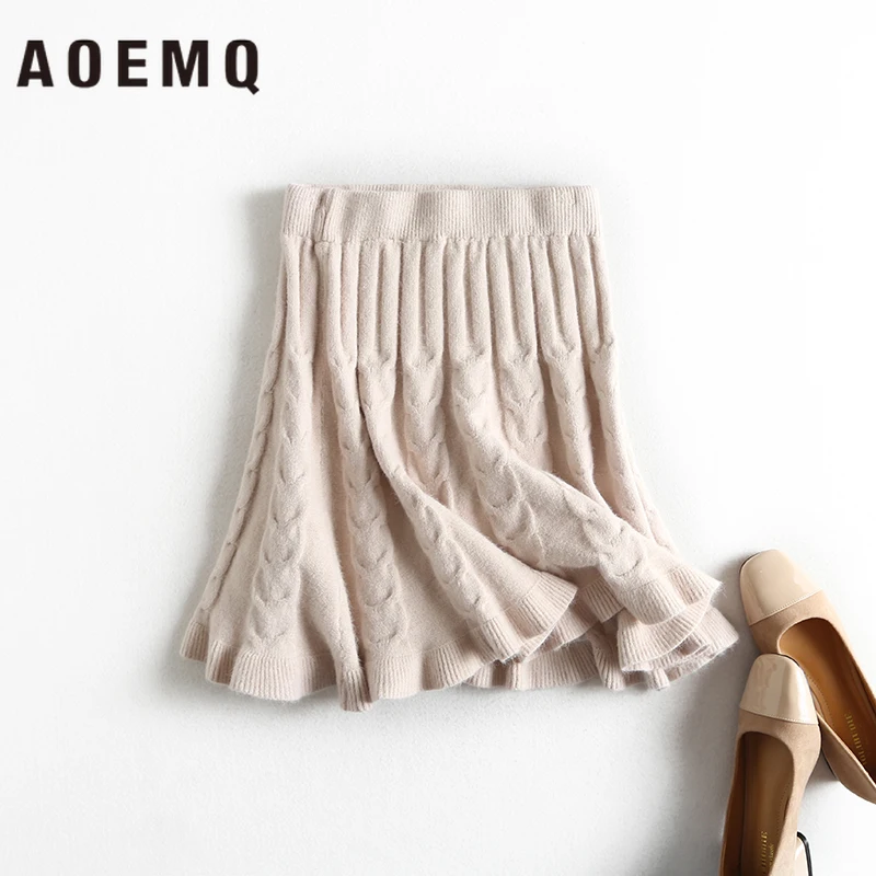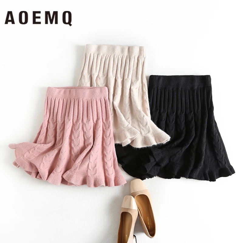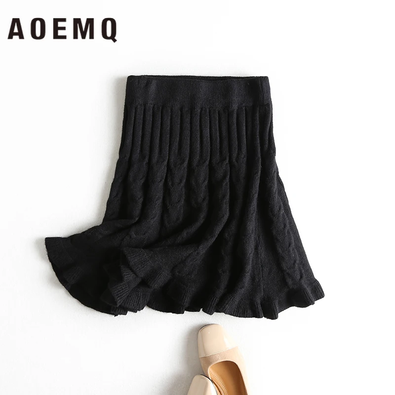 Женские Теплые повседневные юбки AOEMQ, 3 цвета, однотонные хлопковые юбки с драпировкой в виде русалки и рыбок, для зимы