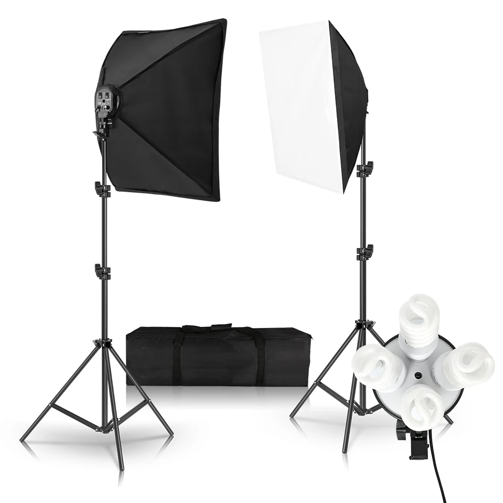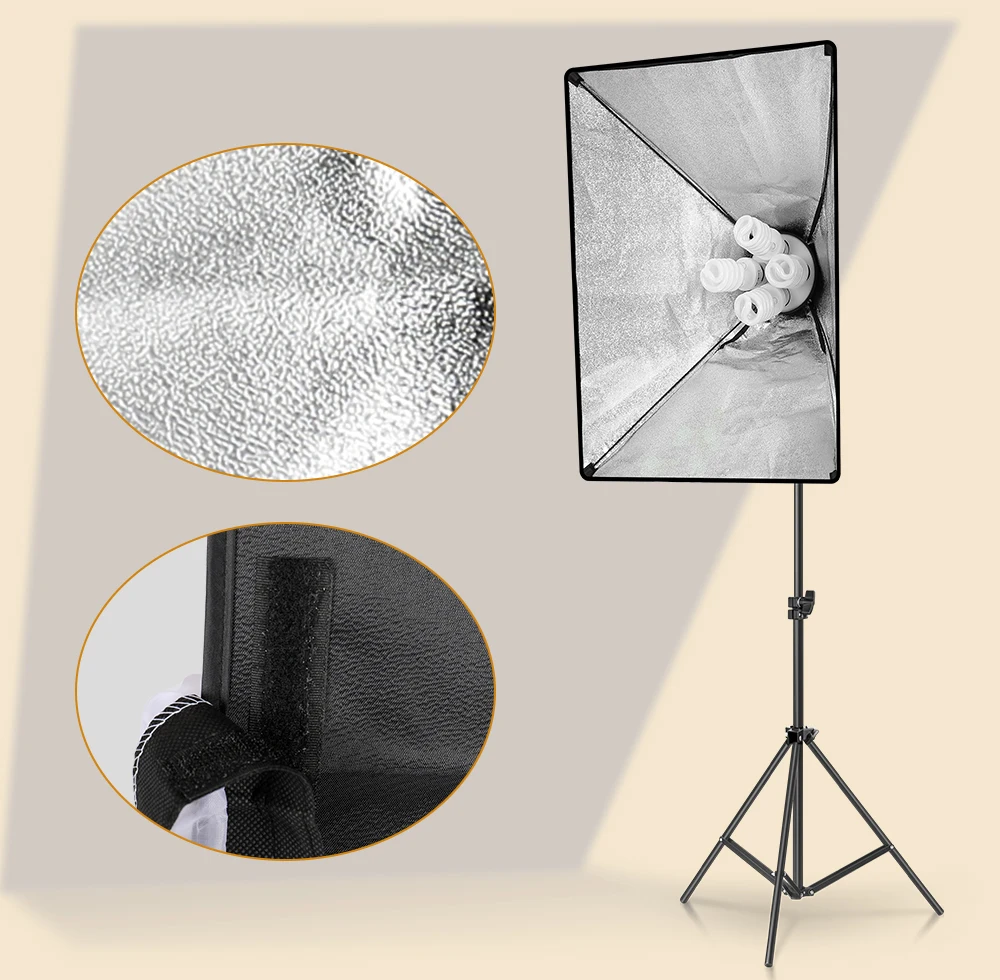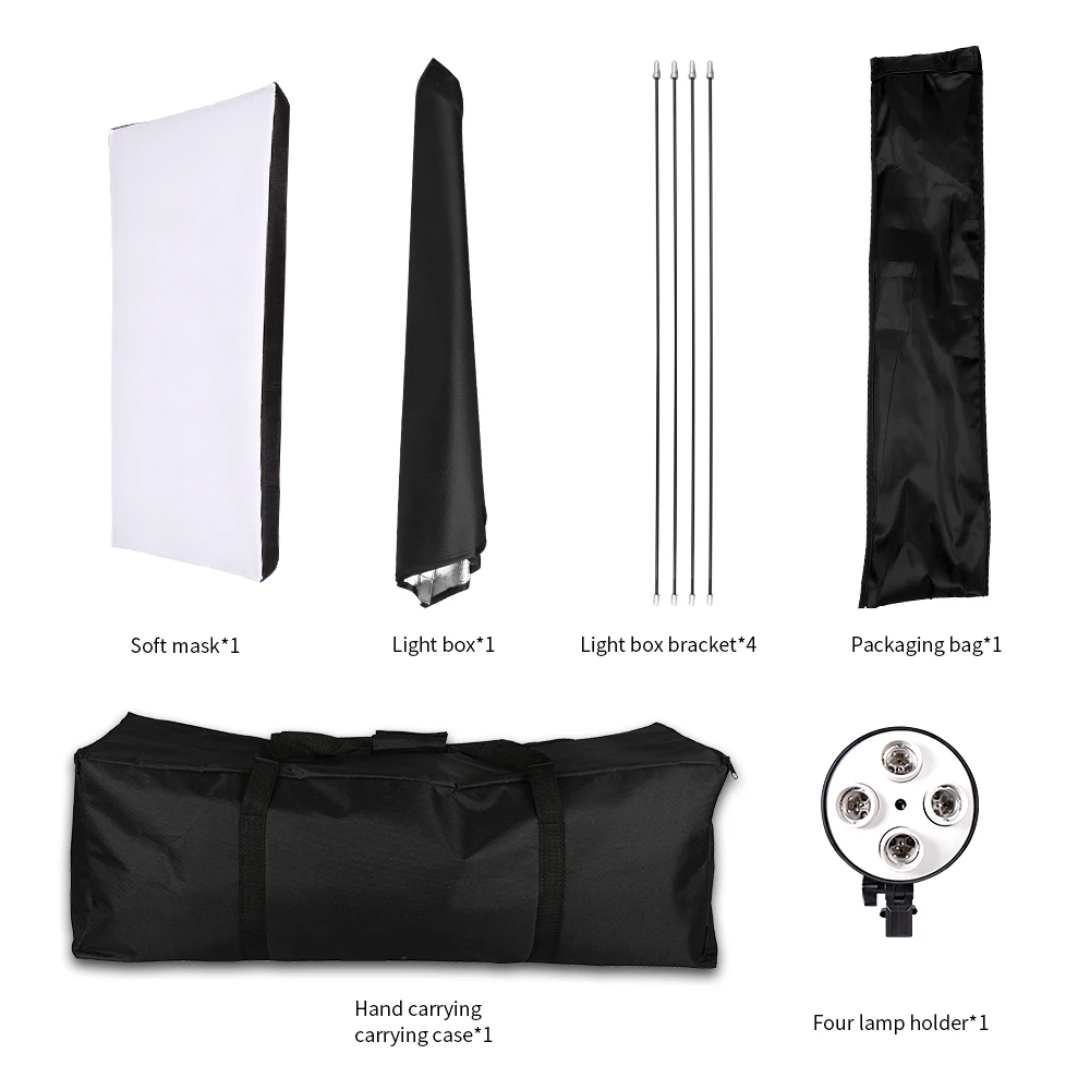 Это идеальный набор софтбоксов для цифрового фото-и видеосъемки.Четыре держателя лампы: сочетаются с 4 лампами, Цоколь E27 подходит для большинства осветительных приборов.Четыре вида адаптера питания: штепсельная вилка европейского стандарта, штепсельная вилка американского стандарта, штепсельная вилка британского стандарта, штепсельная вилка австралийского стандарта.50 см x 70 см софтбокс: белая Складная мягкая ткань, Высококачественная Светоотражающая частица. Безопасное и нетоксичное полиэфирное волокно, 4 гибких соединительных стержня.Светильник: высота в сложенном виде 27 дюймов (68 см), рабочая высота 79 дюймов (200 см). Высокое качество, стабильный и прочный, прост в установке и использовании.Оксфордская сумка: может содержать все детали продукта, легко носить с собой. (Только покупайте лампы, отправляйте оксфордскую сумку)Светильник: Дневной светильник сбалансированный, 5500K лампа обеспечивает истинные и точные цвета для большинства видео и фотостудии. Без мерцания, подходит для студийное освещение для фотографии светильник ing studio, получить лучшие фотографические эффекты.