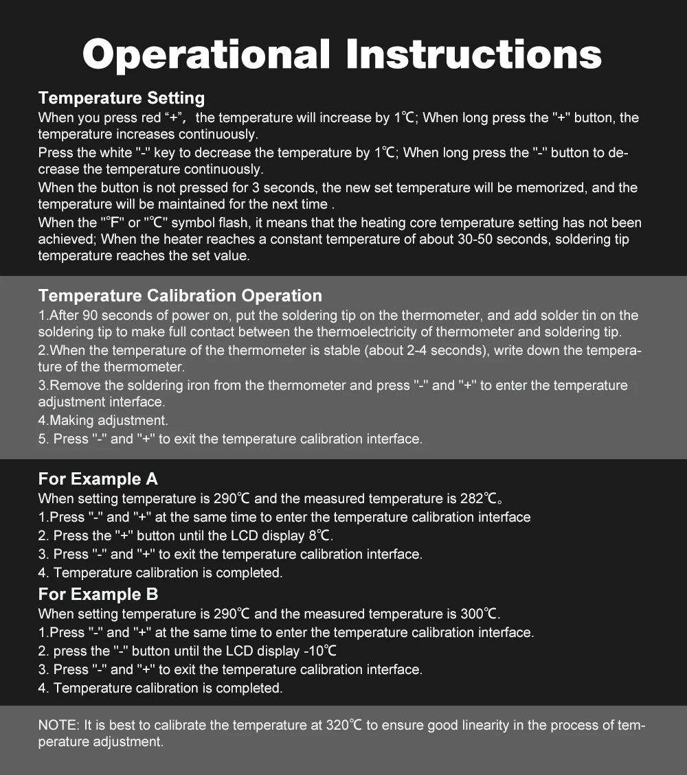 1. Ожидание 30-35 с до 320 ℃ после подключения к сети. Мгновенно точечный поток на наконечнике пайки, а затем точечный экологический оловянный провод.