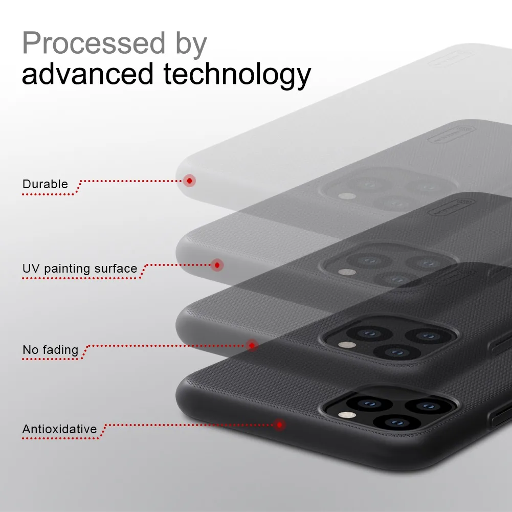 Матовый защитный чехол Для iPhone 11 Изготовитель: NILLKIN Особенности * Используйте импортные экологические поликарбонатные материалы. * Чехол для телефона с обеих сторон использует новейший беспыльный матовый процесс. * Технология УФ-живописи, с удобным прикосновением и элегантным внешним видом. * Жесткость достаточно хороша, чтобы не переносить и легко сломаться. * Откройте форму в соответствии с реальным мобильный телефон с точными функциональными отверстиями. * На поверхности Используется прочная точечная конструкция, износостойкая, противоскользящая, Пыленепроницаемая, с защитой от отпечатков пальцев и легко моется. Описание продукции * Совместимые модели: нет * Материал: пластик * Толщина: 1,8 мм * Розничная посылка: цветная блистерная упаковка * Дополнительные цвета: черный/шампанское золото/ярко-красный/павлин синий/мятный зеленый (В разных светильник источников, или различий в цветопередаче разных компьютерных, дисплей, цвет изделия может немного отличаться от таблиц размеров не отражать фактический цвет из эта ссылка на сайт могут применяться исключительно для справки.) Внешний вид изделия