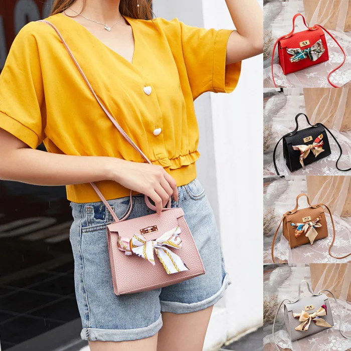 2019 портативная женская сумка через плечо из искусственной кожи, модная женская сумка с замком, сумка через плечо с украшением из ленты