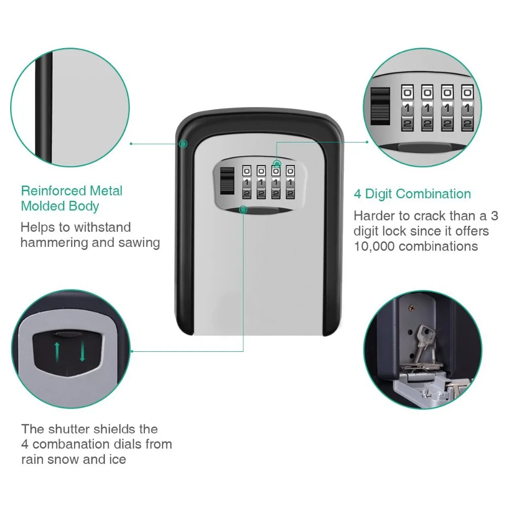 Ящик для хранения ключей, погодозащищенный 4-значный комбинированный Сейф для хранения ключей, для дома и улицы, со скрытым кодом