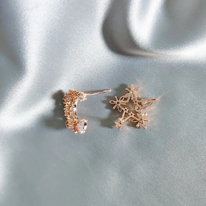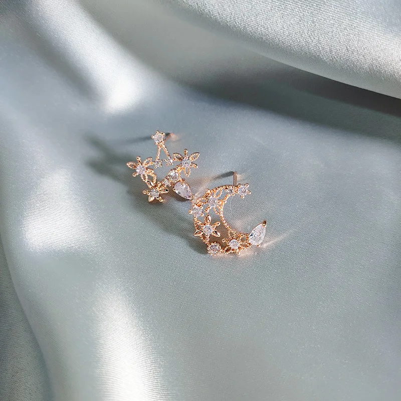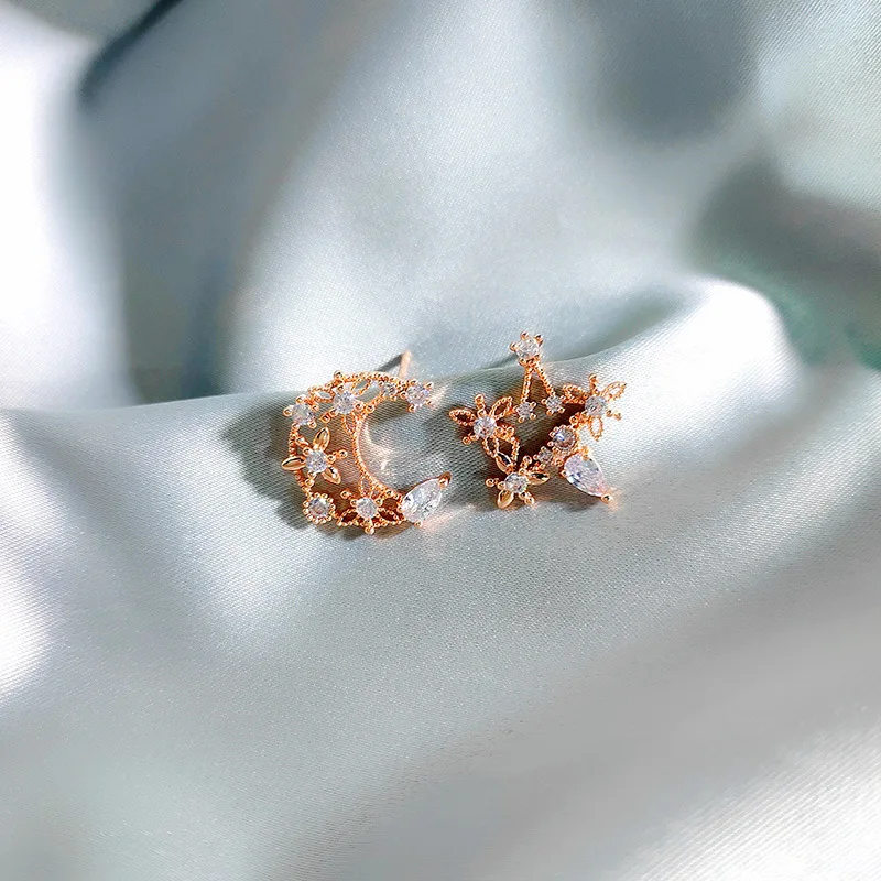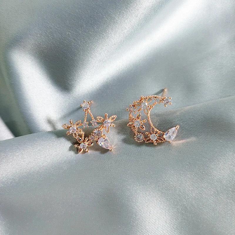 Женские классические серьги-гвоздики со звездами, стразы в форме Луны, цветные циркониевые серьги в форме Луны, роскошные дизайнерские серьги для женщин