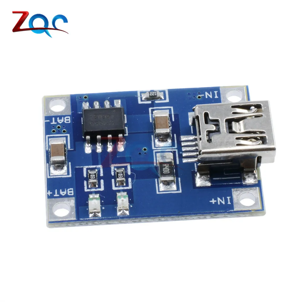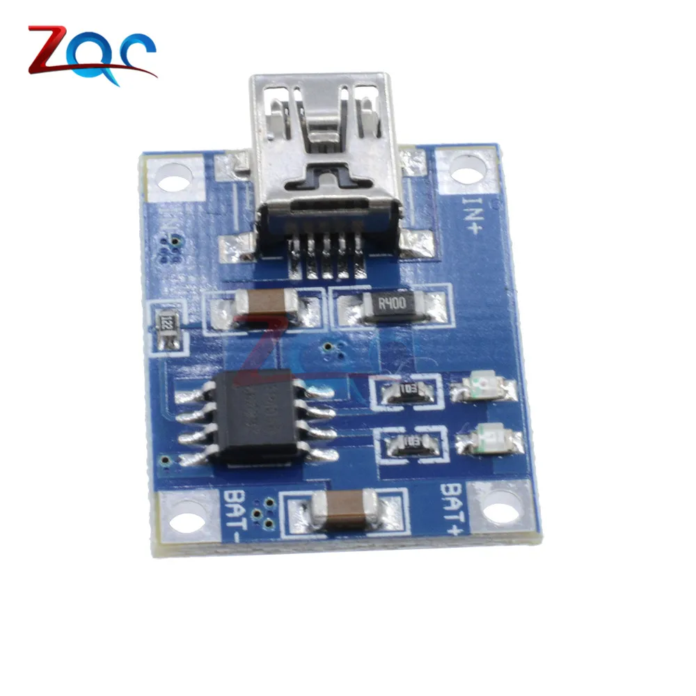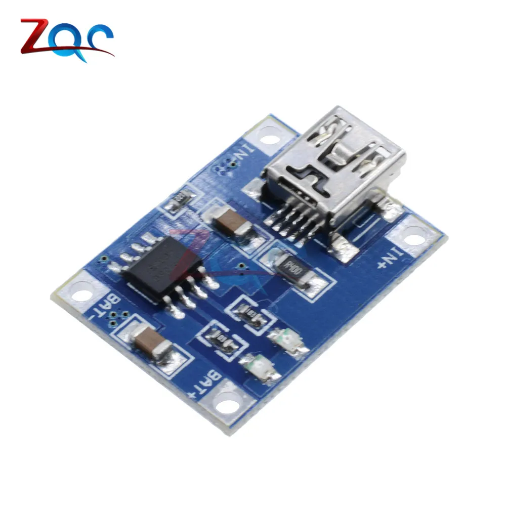 1. Характеристика1). Высококачественный зарядный чип TP4056, простая схема, Хорошее защитное значение, высокая точность зарядки.2). Полная механическая автоматизация, высокая надежность.3). Автоматически Отрегулируйте выходной ток от 100 до 1000 мА, просто изменив фиксированный резистор на печатной плате.2. ПрименениеЕго можно использовать для зарядки одной литиевой батареи или параллельных литиевых батарей.3. ПараметрВход Напряжение: 4,5 ~ 5,5 VПолная зарядка напряжения: 4,2 VМаксимальный выходной ток: 1AИндикатор питания: красные подставки для зарядки, зеленые подставки для полной зарядки.Входной интерфейс: микро интерфейсРазмер изделия: 25 мм * 19 мм.4. Выходной ток и соответствующее сопротивлениеR1(K) I(mA)30 5020 7010 1305 2504 3003 4002 5801,66 6901,5 7801,33 9001,2 10005. Примечания:1). Амперметр может быть подключен только к входному порту 5 в module.2). Лучше, чтобы зарядный ток равнялся 37% емкости аккумулятора. Например, ток зарядки должен быть 400 для аккумулятора 1000 мАч.3). Соединительный провод не должен быть слишком толстым.4). Убедитесь, что точка подключения хорошая.5). Если входное напряжение слишком высока, например, 5,2 V или даже 5,5 V, то зарядный ток никель-металл-будет меньше, чем 1000mA, это не выходит за пределы нормы. Когда напряжение слишком велико, Чип автоматически уменьшит зарядный ток, чтобы защитить чип от повреждения от ожога. Кроме того, это нормально, что чип чувствует себя горячим, когда рабочая температура чипа составляет около 60 °.