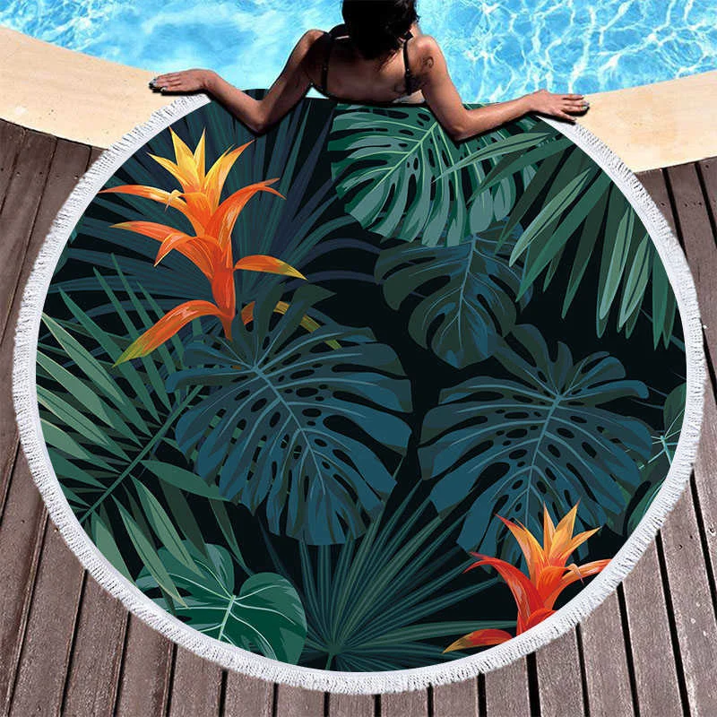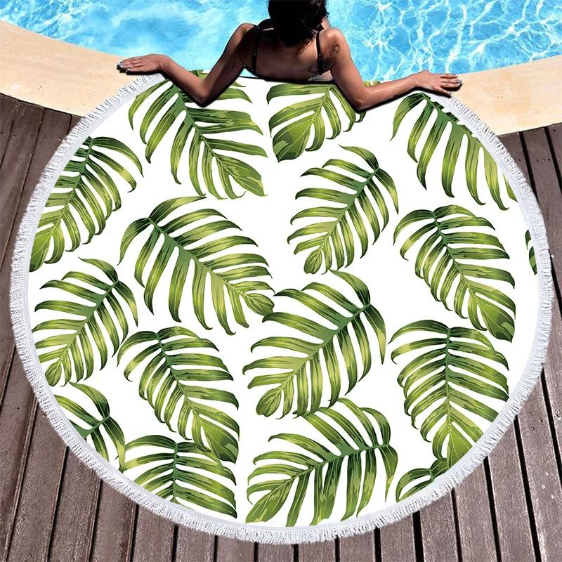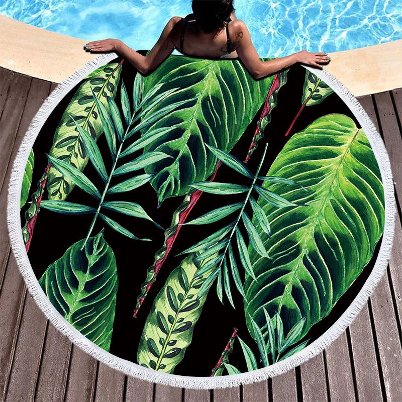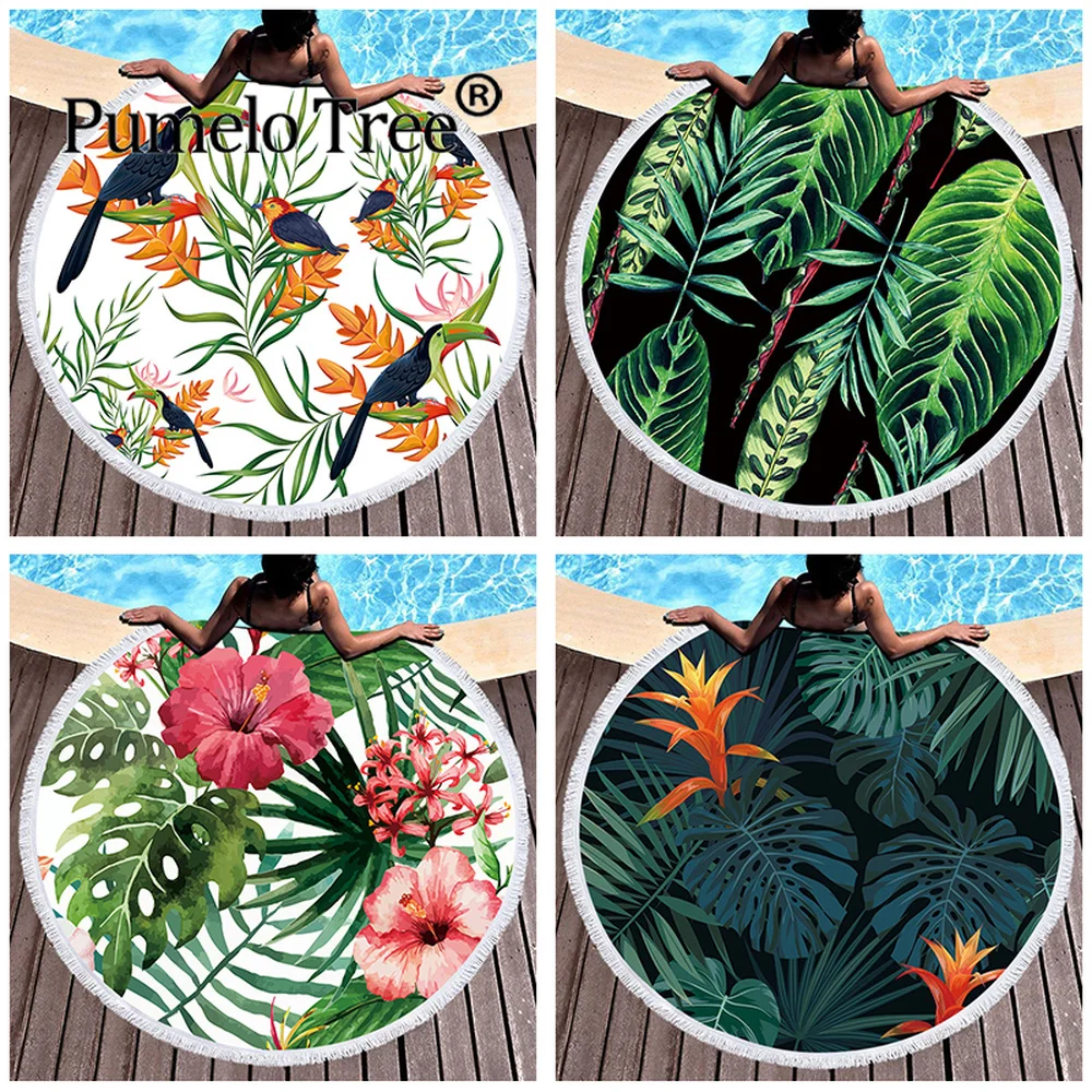 Модное пляжное полотенце с листьями и кисточками, круглая ткань из микрофибры для растений и джунглей, 150 см одеяло для пикника и йоги, пляжное покрывало, гигантские полотенца, полотенце для кровати