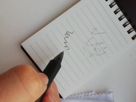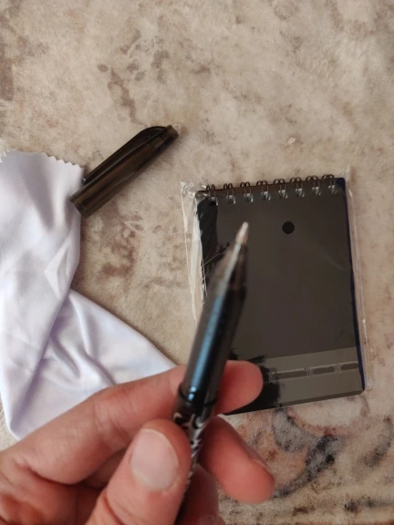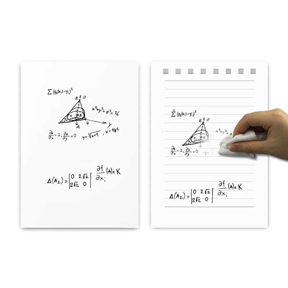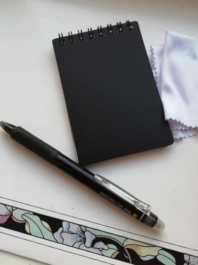 Беру уже второй блокнот. Всё круто, очень понравилось. Во время написания видно влагу, но высыхает за несколько секунд - надо подождать пока высохнет. Ещё брал отдельно стираемые ручки - они сохнут чуть дольше, но всё равно довольно быстро. У ручек специальные быстросохнущие водорастворимые чернила. Писать чем-то ещё не советую - будет долго сохнуть и почти нереально стереть, особенно не повредив лист. Стирать можно обратным концом ручки (если много, то эффективнее перпендикулярно тексту) или влажной салфеткой (сухой не получится), можно даже просто под открытую воду под кран сунуть и помыть. Феном стирать не пробовал. Листы не из бумаги, тактильно похожи на тонкий пластик или вощёную бумагу. Ручка пишет хорошо, даже спустя месяц. Только лак с неё немного облез. Очень быстрая доставка с полным отслеживанием.