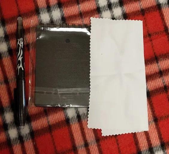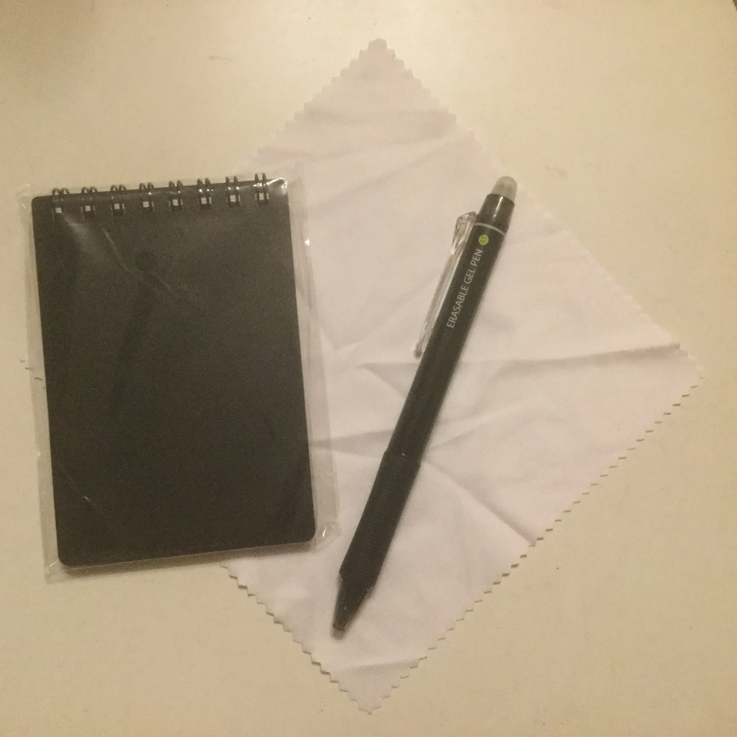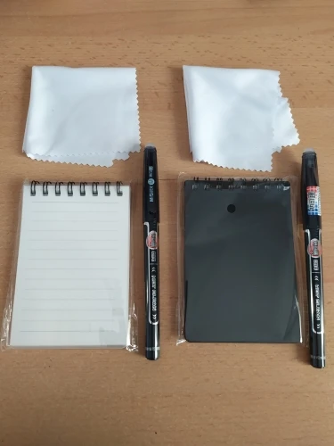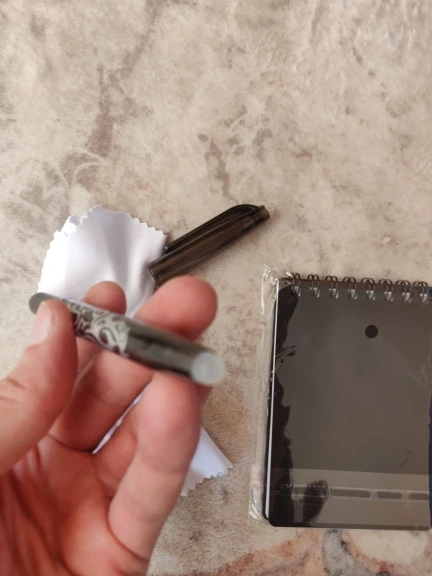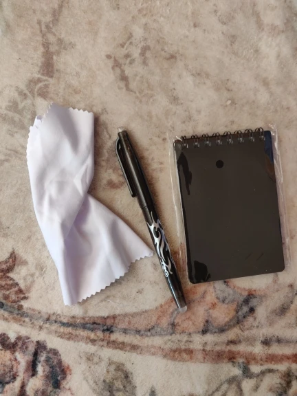 хороший блокнот, ручка и салфетка. Всё стирается, правда салфеткой плоховато. Заказывала вместе ещё планшет для рисования у этого продавца, пришли в одной посылке. Продавцу спасибо, всё отслеживалось, товар супер!