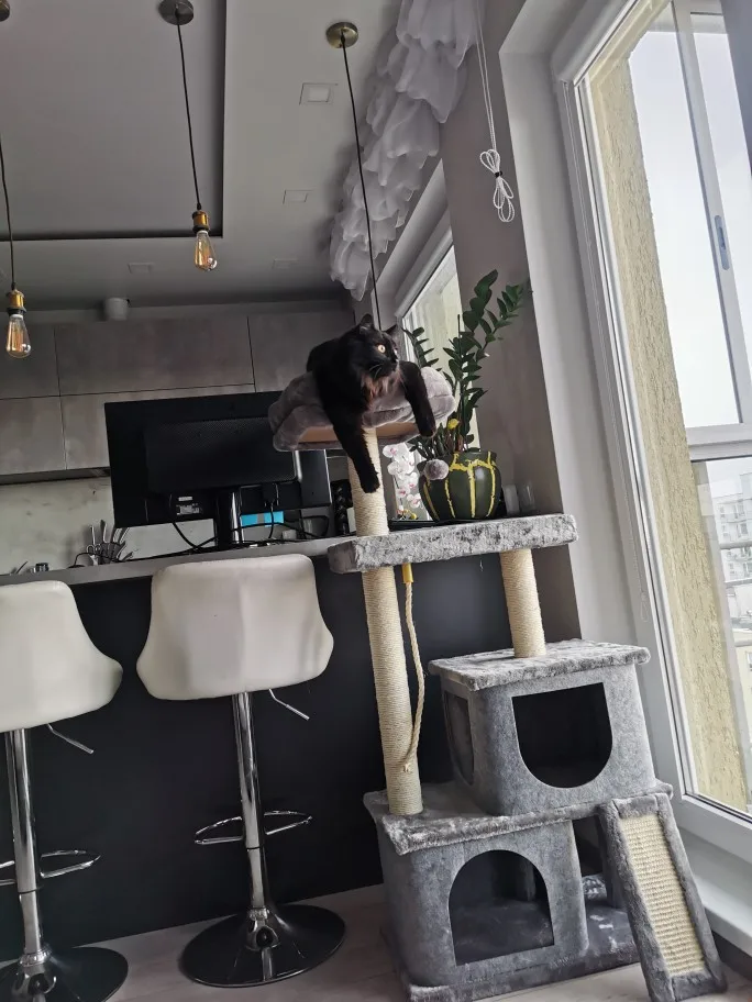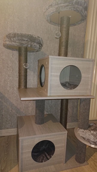Кошачье дерево потрясающе! Точно, как выглядит на картинке и очень легко собрать! Мне нравится!