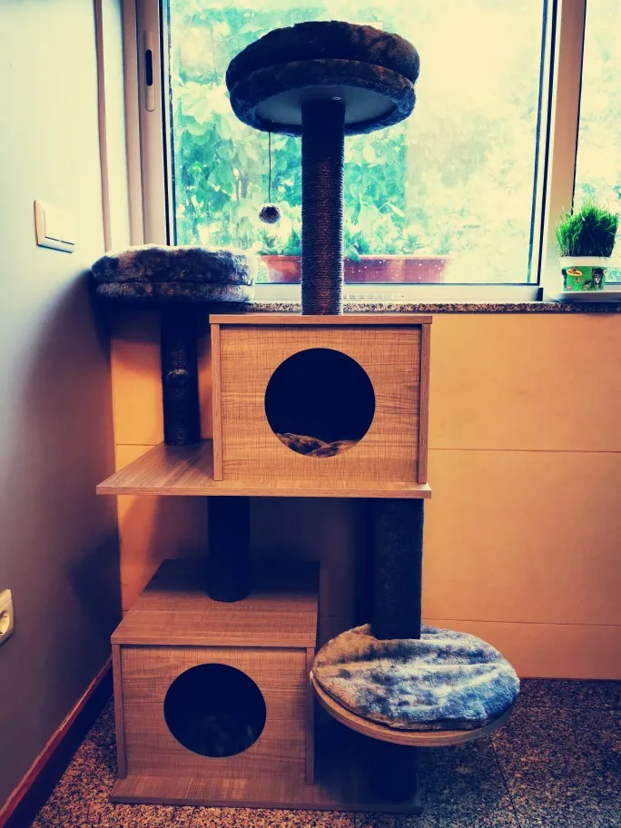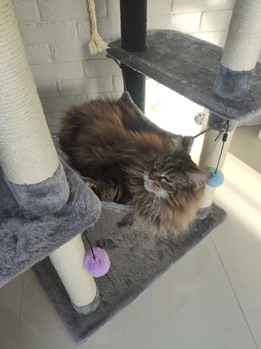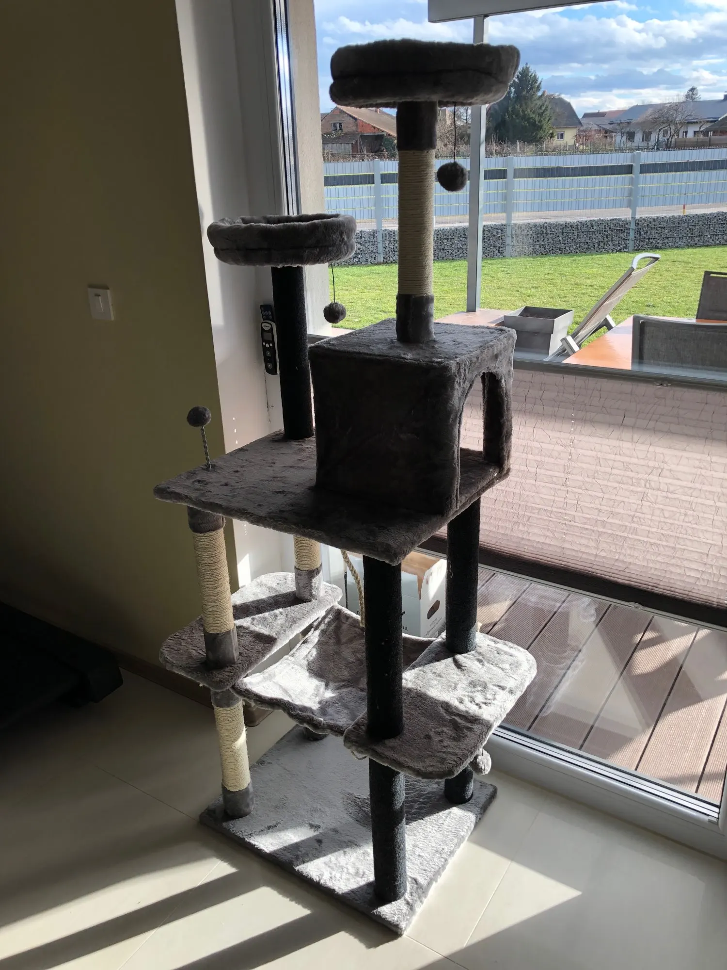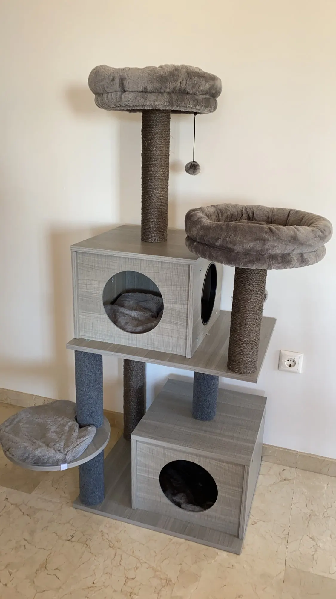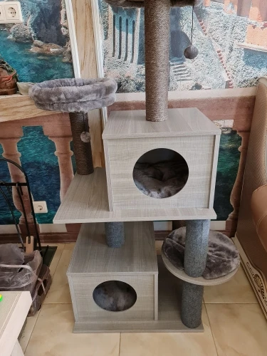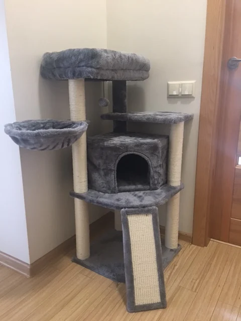 Второе дерево, которое мы покупаем у этого поставщика и все еще топ. Твердый, хорошее качество материалов, легко чистится и очень прочный! Кошки любят это