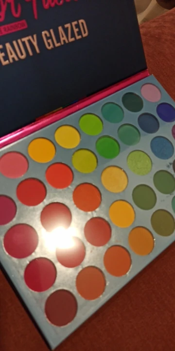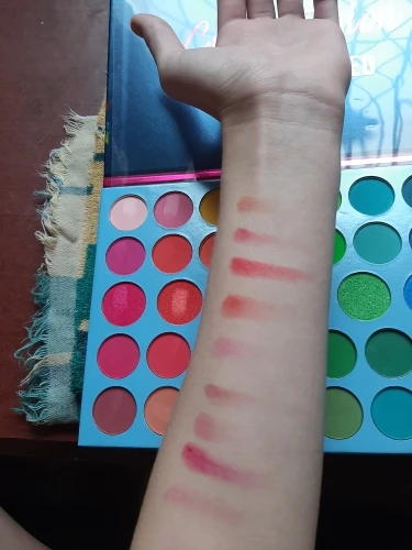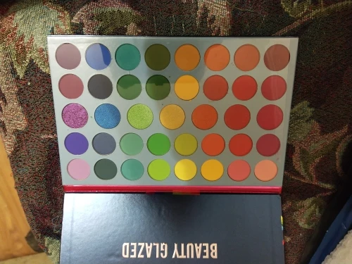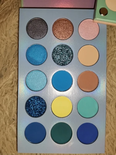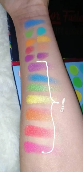 Палетка прекрасная, пигментация просто топ. Конечно, есть цвета, которые совершенно не яркие, меловые, но не сильно страшно. Порадовала зелёная гамма, цвета яркие, не грязные. Глитеры супер, блёстки не падают, липковатая текстура, но не смертельно. В деле ещё не пробовала, наносить скорее всего нужно будет на подложку, но, думаю, и без неё будет ярко. Но доставка огорчила, тени шли больше трех месяцев.