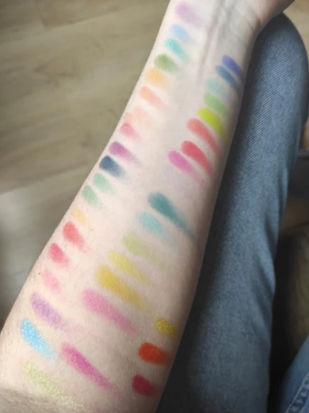На фото это не так хорошо, как они пигментируют, ни яркий цвет, но все цвета очень хорошо пигментируют, и мне нравится, как некоторые остаются, потому что они очень яркие и выделяются много!
