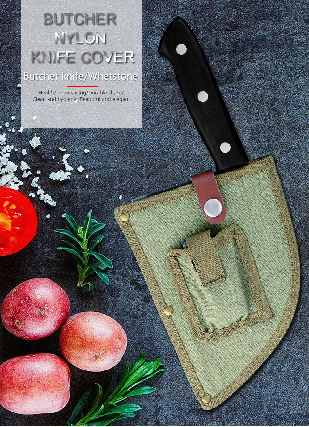 Тип 5: нейлоновая оболочка + точильный камень + нож для мясника