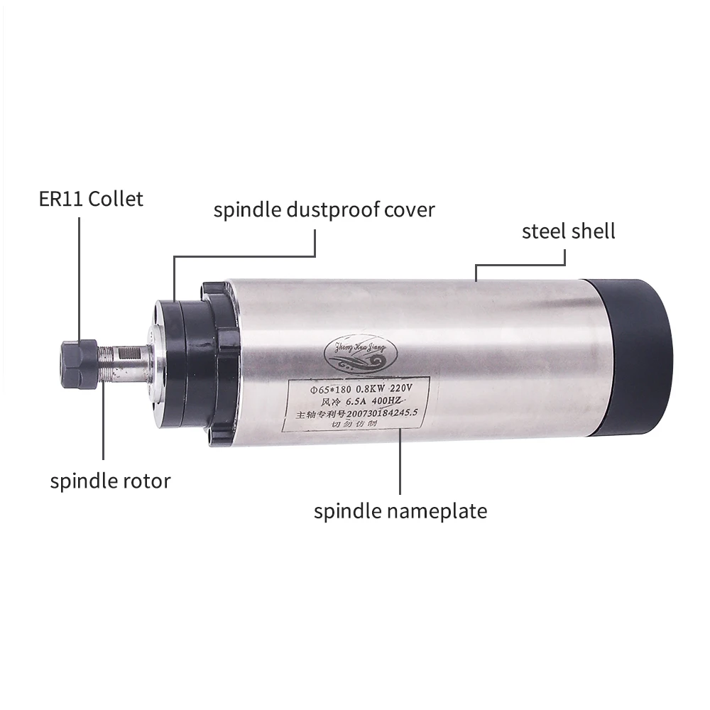 0.8KW 220V мотор шпинделя воздушного охлаждения CNC 800W 65mm ER11 с 4 подшипниками шпиндель с воздушным охлаждением для гравировального фрезерного станка