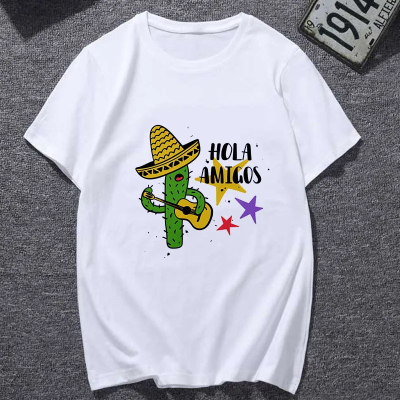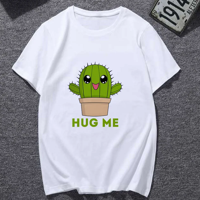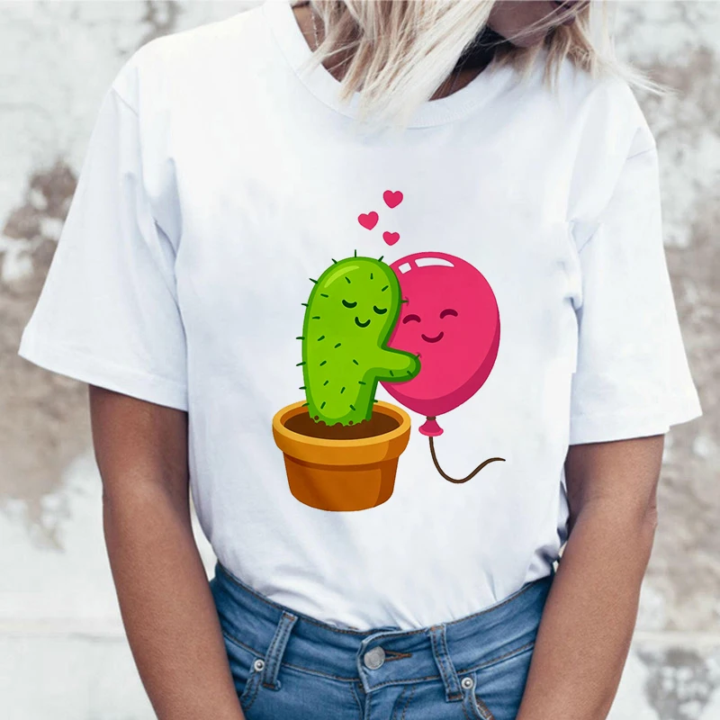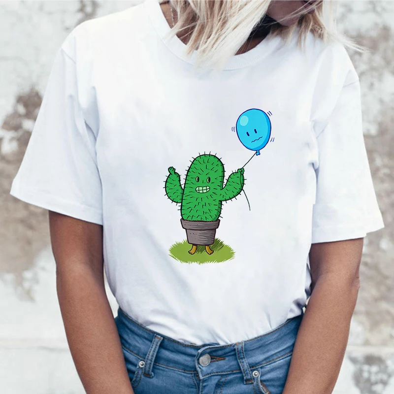 Женская футболка с короткими рукавами, белая футболка с принтом кактуса и воздушного шара, есть большие размеры