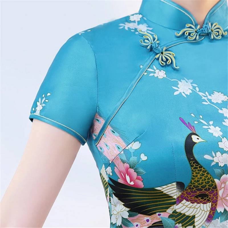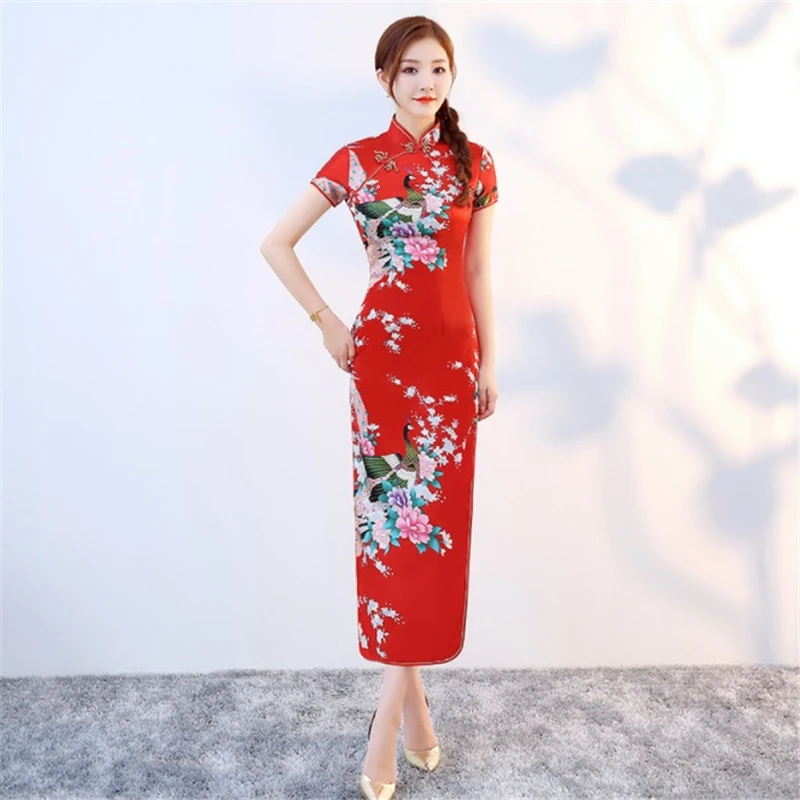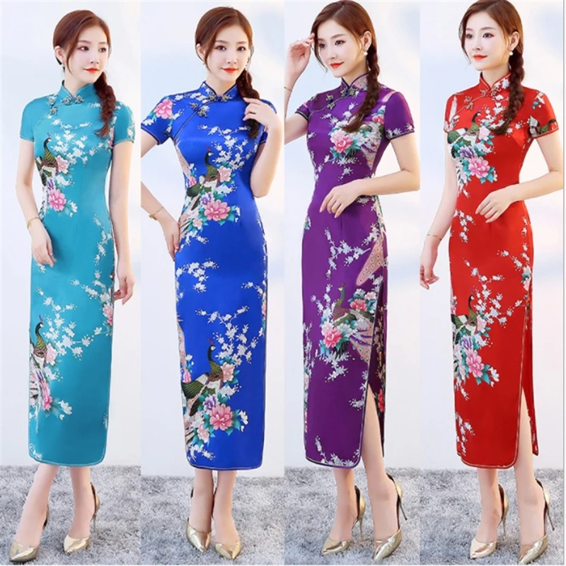 Традиционные китайские костюмы чонсам, женское облегающее платье, костюм Ципао Тан, платье с принтом журавлей и разрезом, сексуальное азиатское кимоно